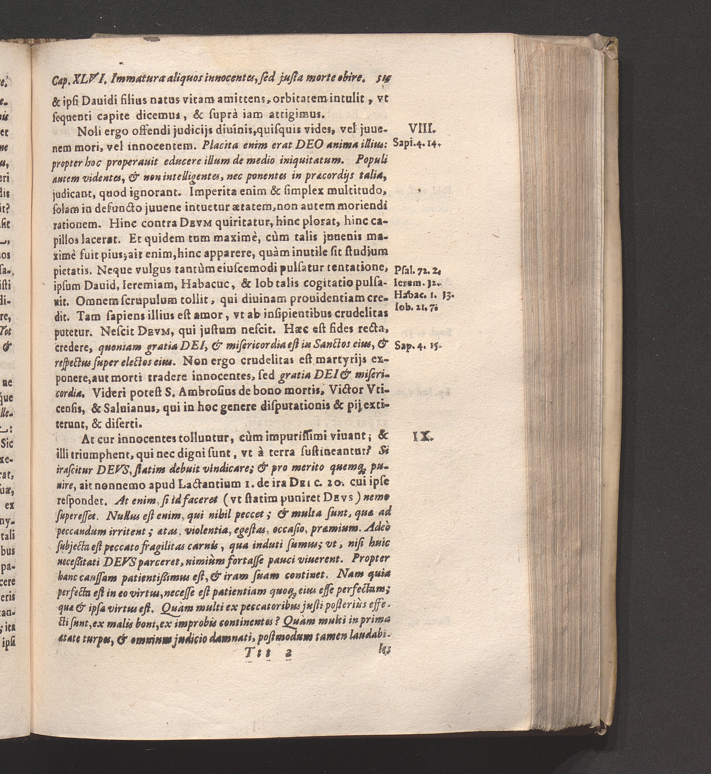 Capvt XLVI. Immatura morte aliquos, licet innocentes, occultis sed iustis, & clementibus[...]