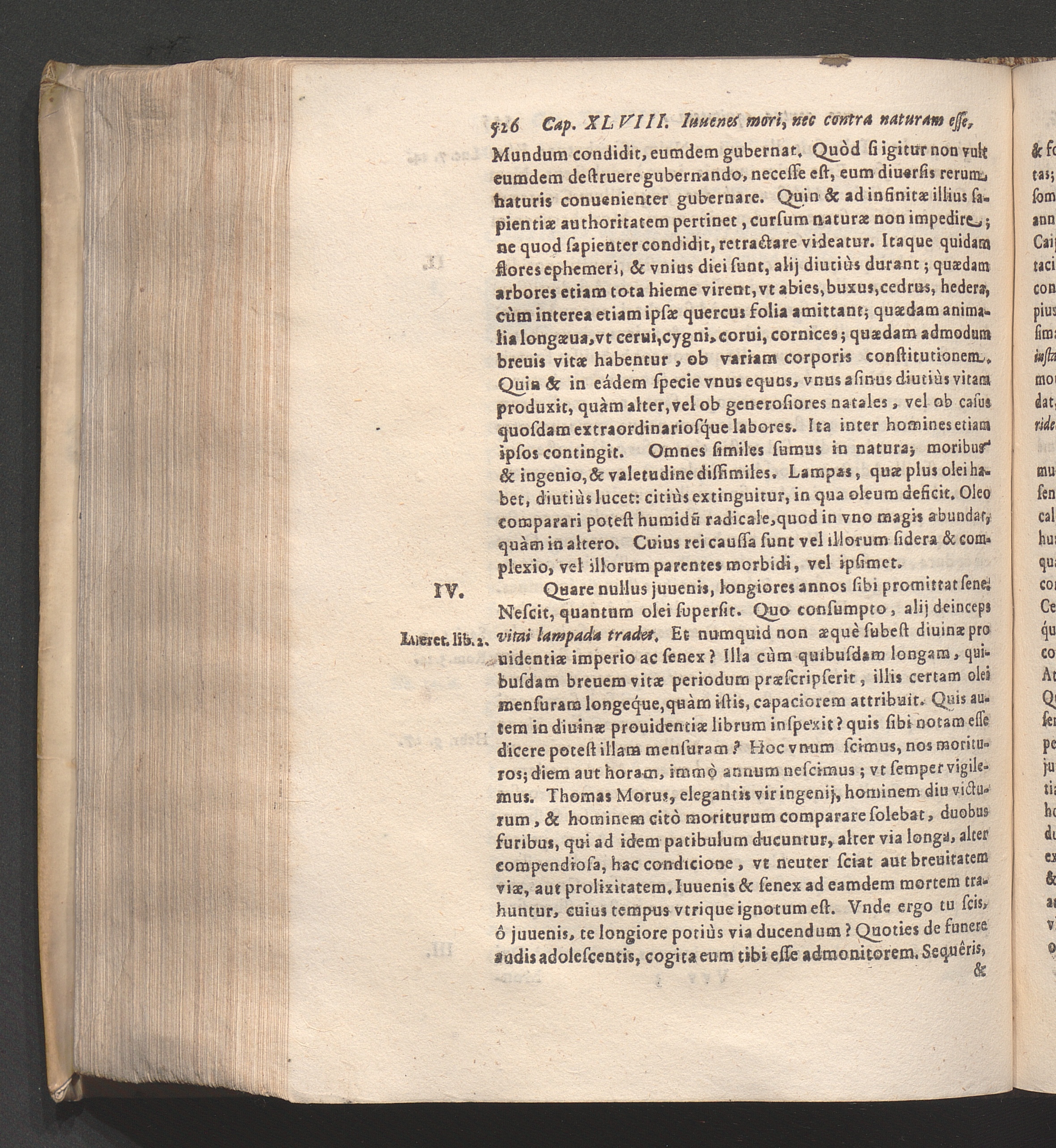 Capvt XLVIII. Alia caussӕ, ob quas inuuenes moriuntur sӕpe ante senes, tum ex natura,[...]
