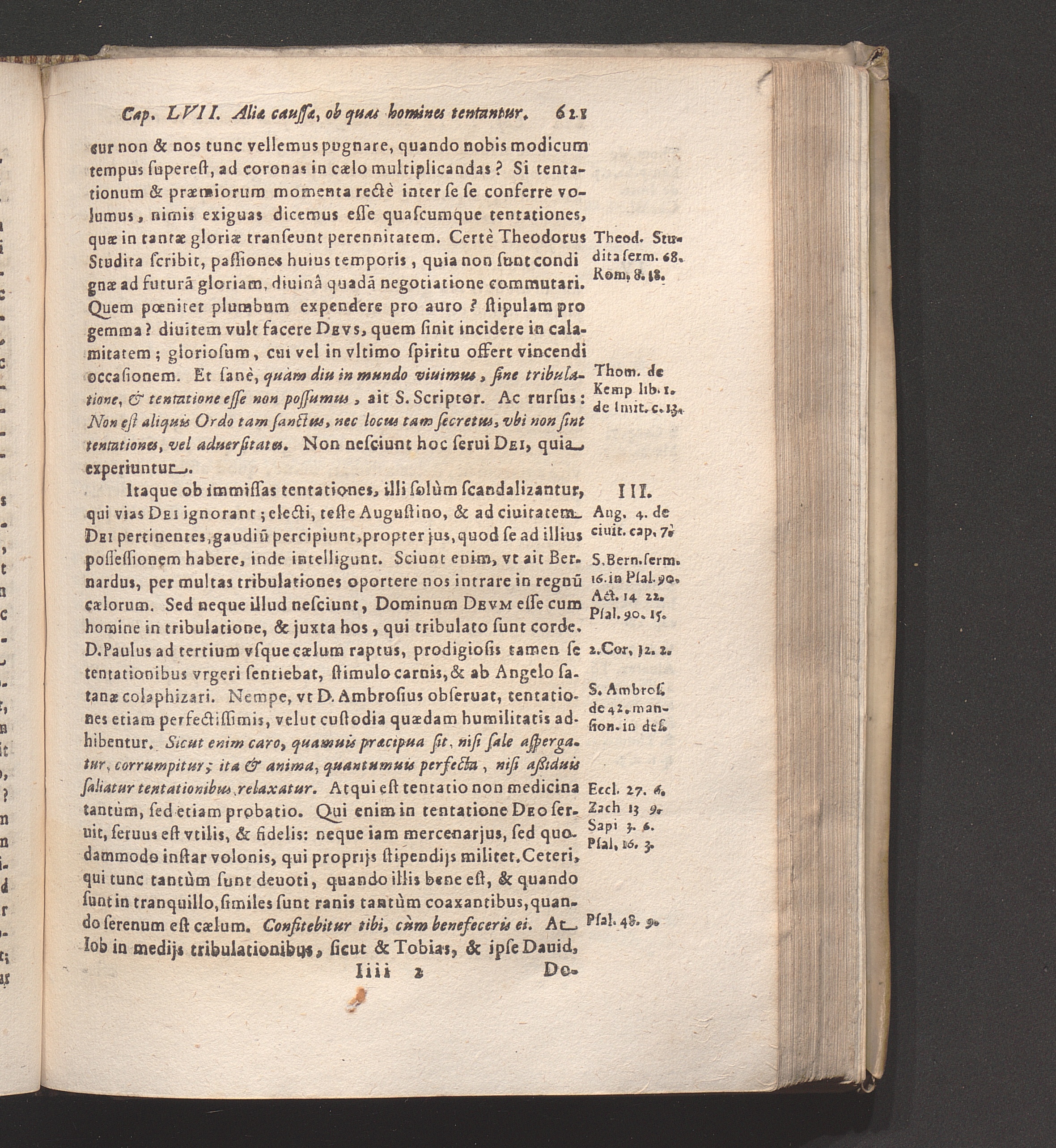 3. Necessarias esse etiam Sanctis tentationes.