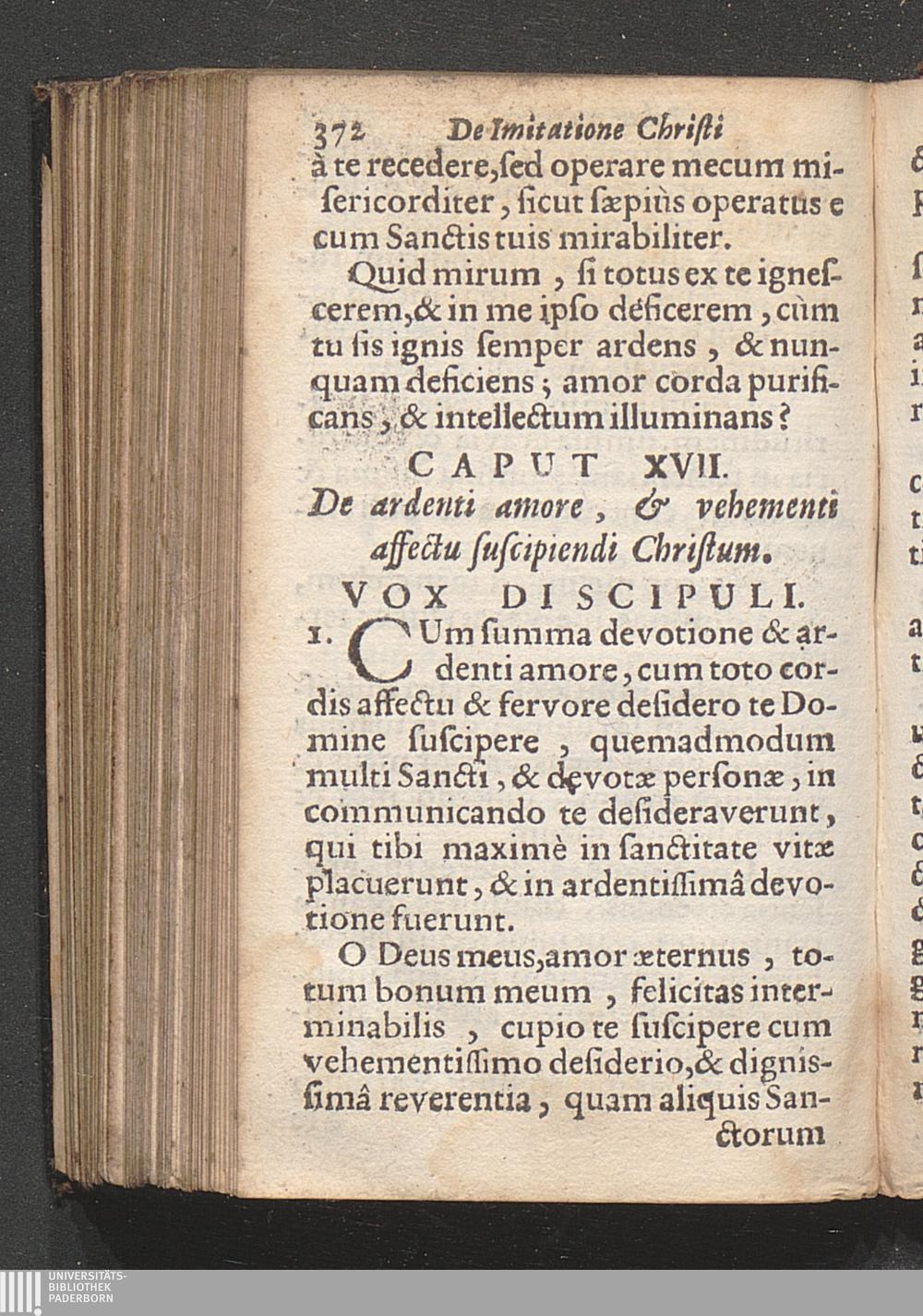 XVII. De ardenti amore, & vehementi affectu suscipiendi Christum.