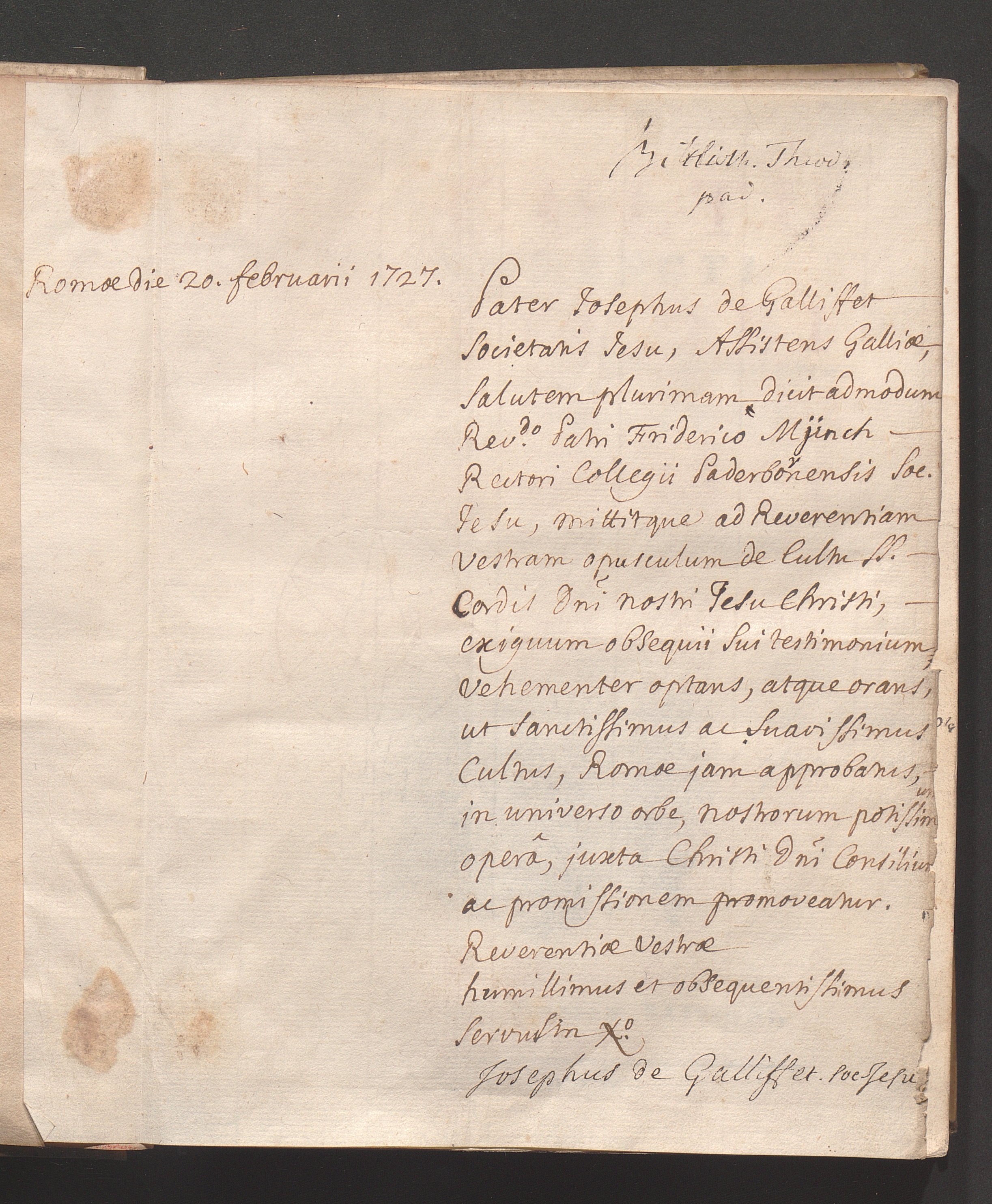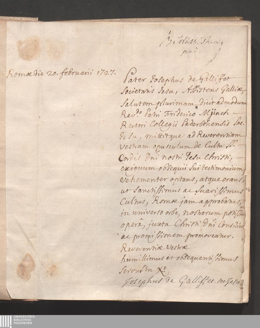 hs. Widmungsschreiben des Verfassers an den Rektor des Paderborner Jesuitenkollegs[...]