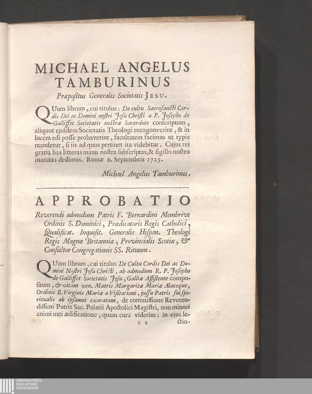 Approbatio Reverendi admodum Patris F. Bernardini Membrive Ordinis S. Dominici, Prædicatoris[...]