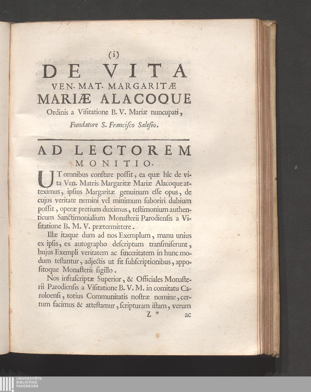 Pars II. De vita venerab. Mat. Marg. Mariæ Alacoque.