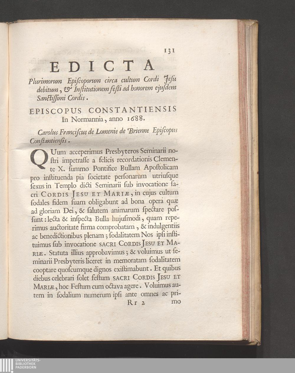 Episcopus Constantiensis in Normannia anno 1688.