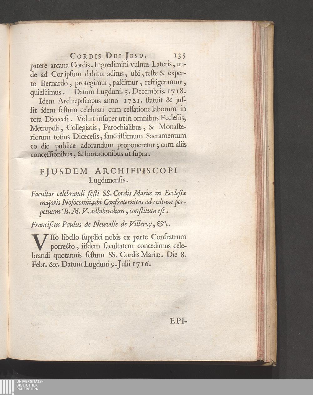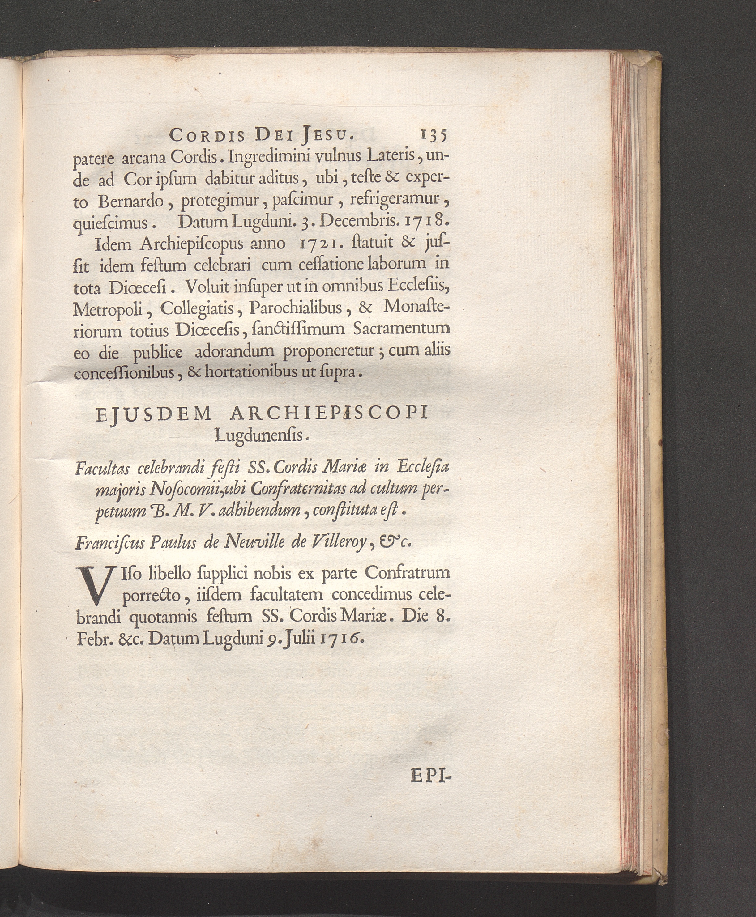 Ejusdem Archiepiscopi facultas celebrandi festi SS. Cordis Mariæ.