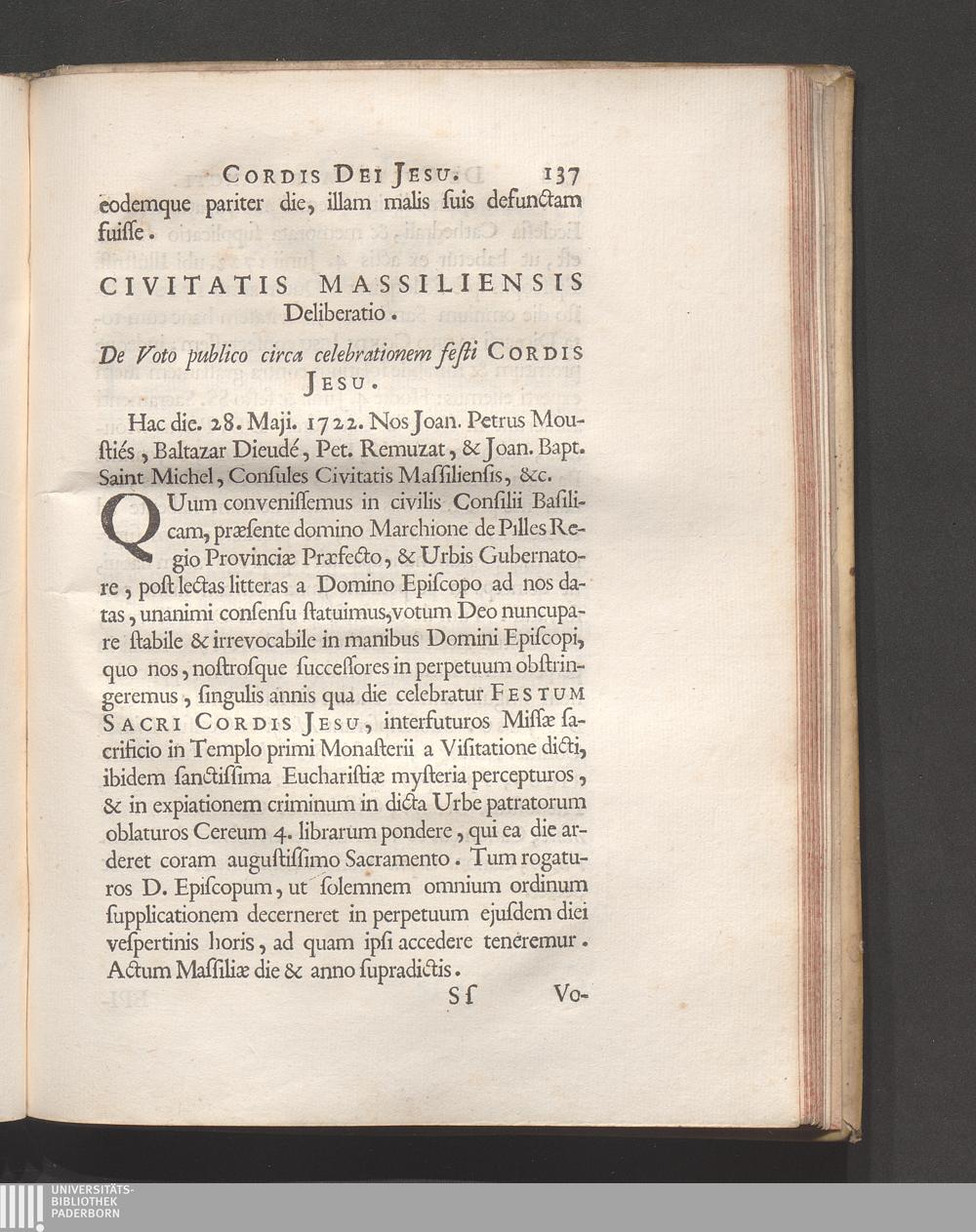 Civitatis Massiliensis deliberatio de voto publico circa celebrationem festi SS.[...]
