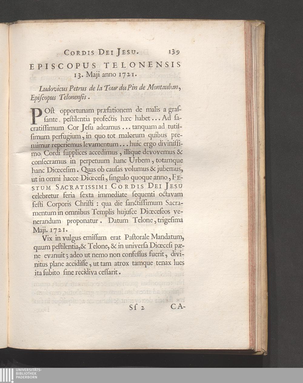 Episcopus Telonensis anno 1721.