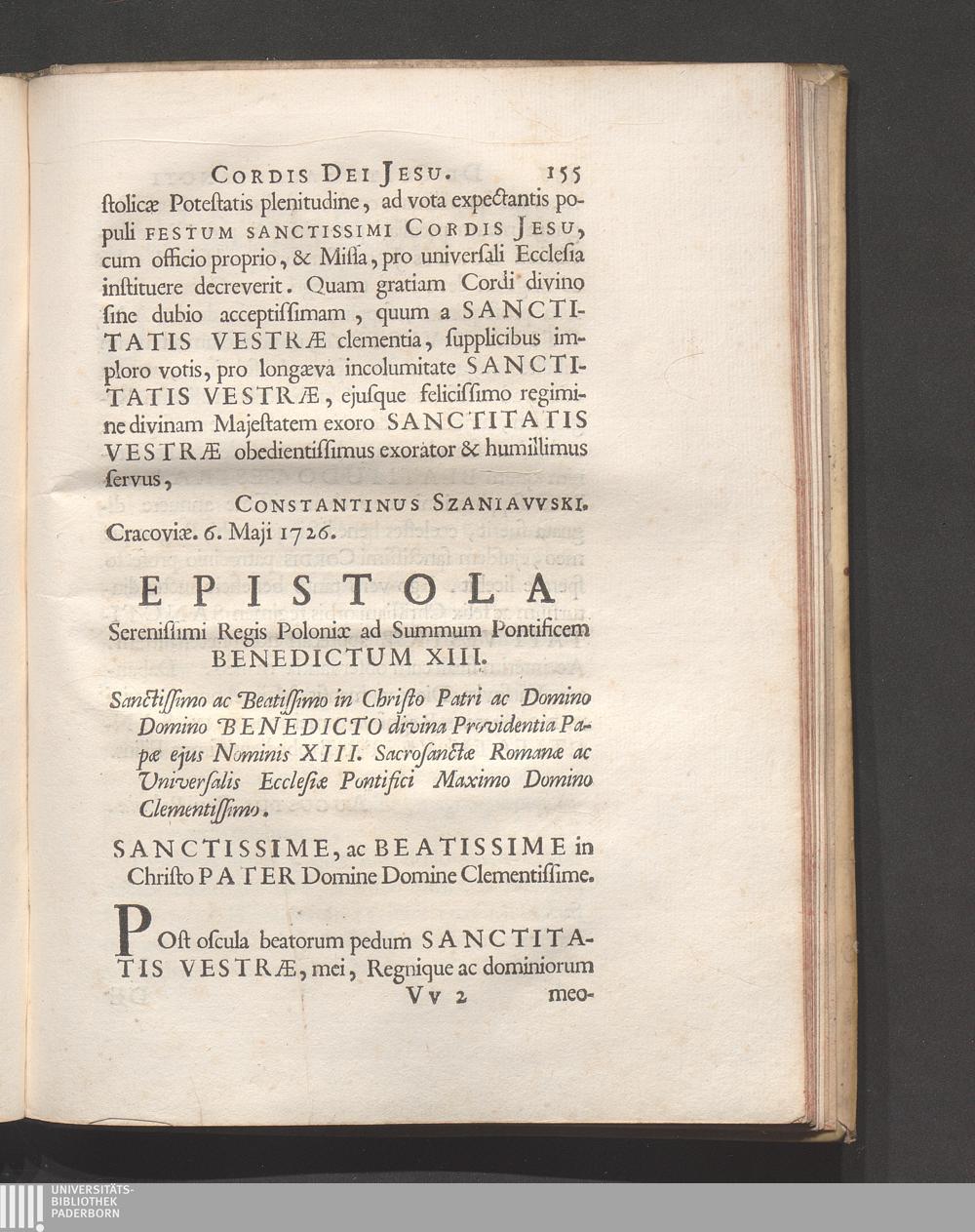 Epistola Serenissimi Regis Poloniæ ad Summum Pontificem Benedicutm XIII.