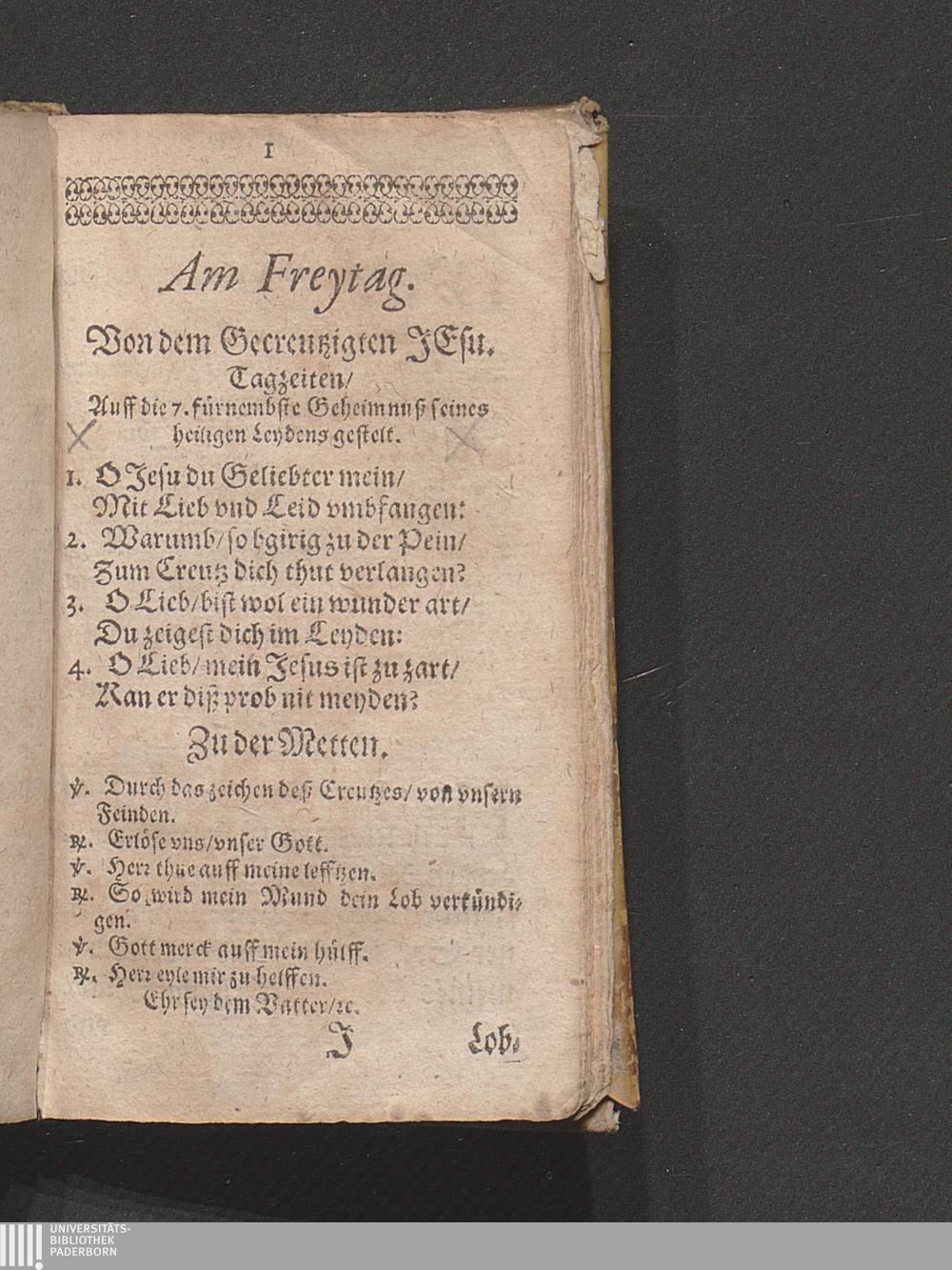 Tagzeiten, Litaneyen, Rosenkræntz Für den Sontag, Von dem Allerliebreichsten Got[...]