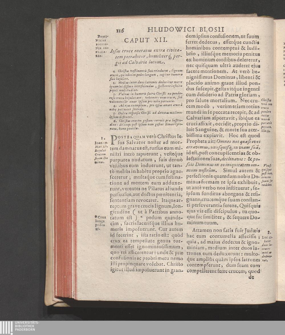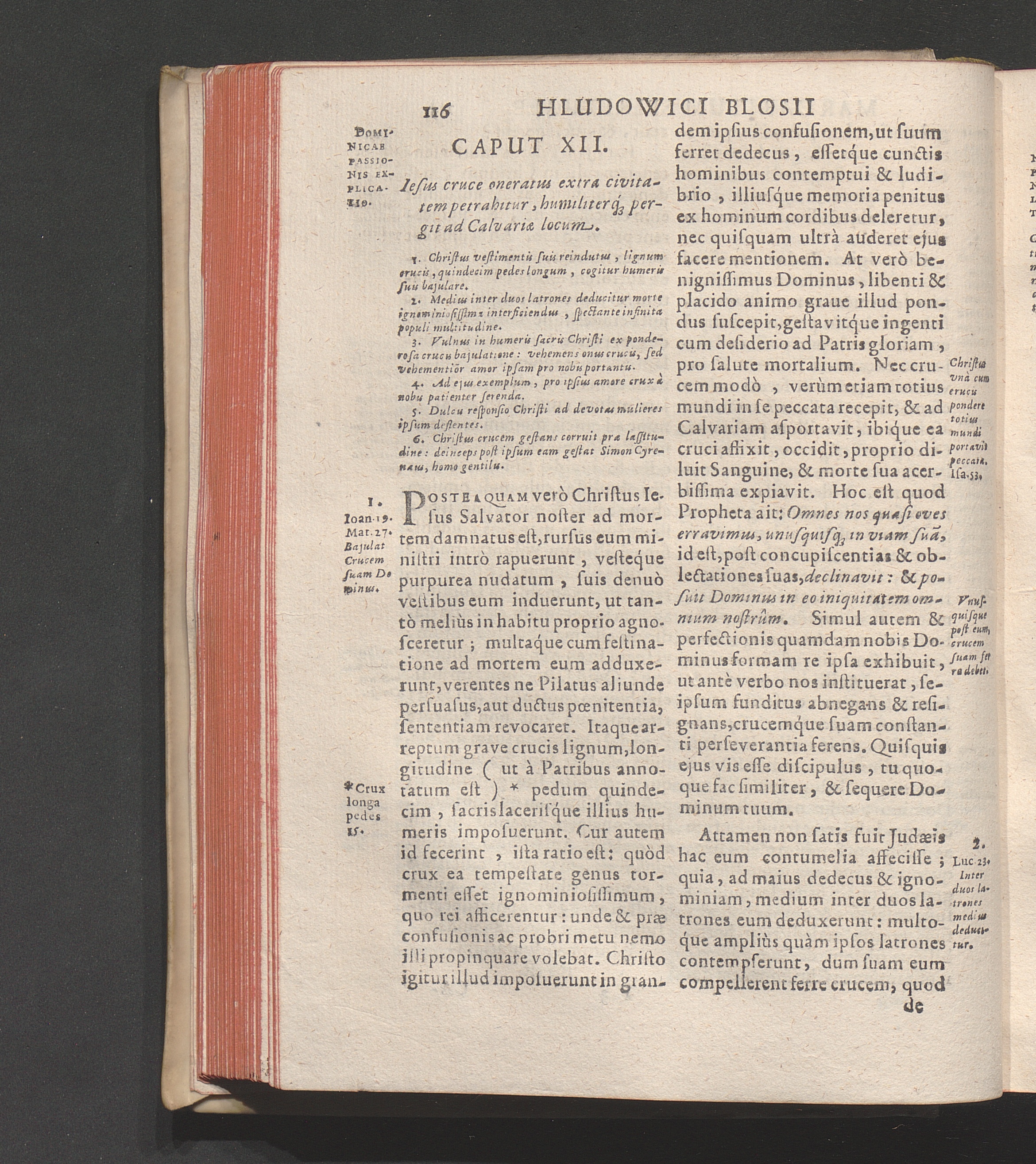 Cap. XII. Iesus in cruce oneratus extra civitatem pertrahitur, humiliterq[ue] pergit[...]