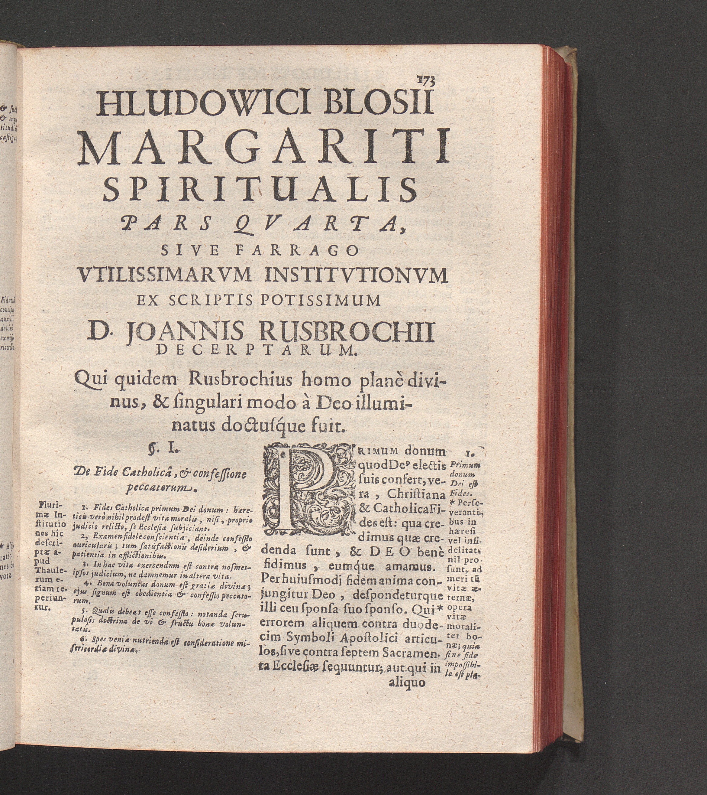 Sectio I. Margaritum Spirituale, Partibus sex distinctum.distinguitur.