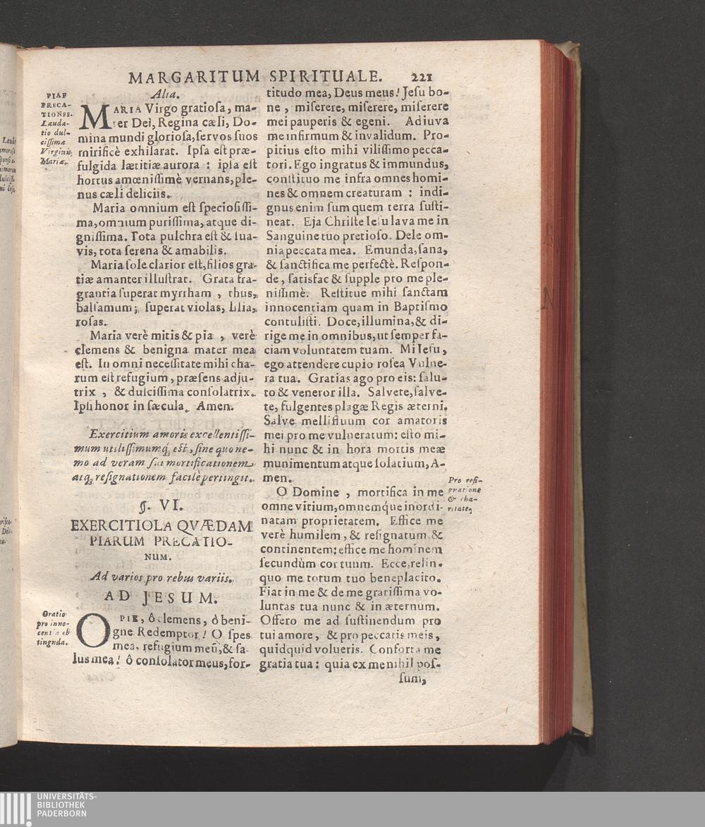 Sectio I. Margaritum Spirituale, Partibus sex distinctum.distinguitur.