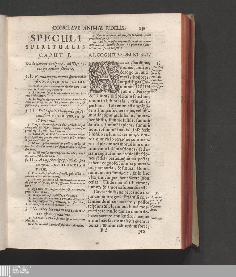 Sectio Secunda. Conclave animæ fidelis, Partibus quatuor distinctum.