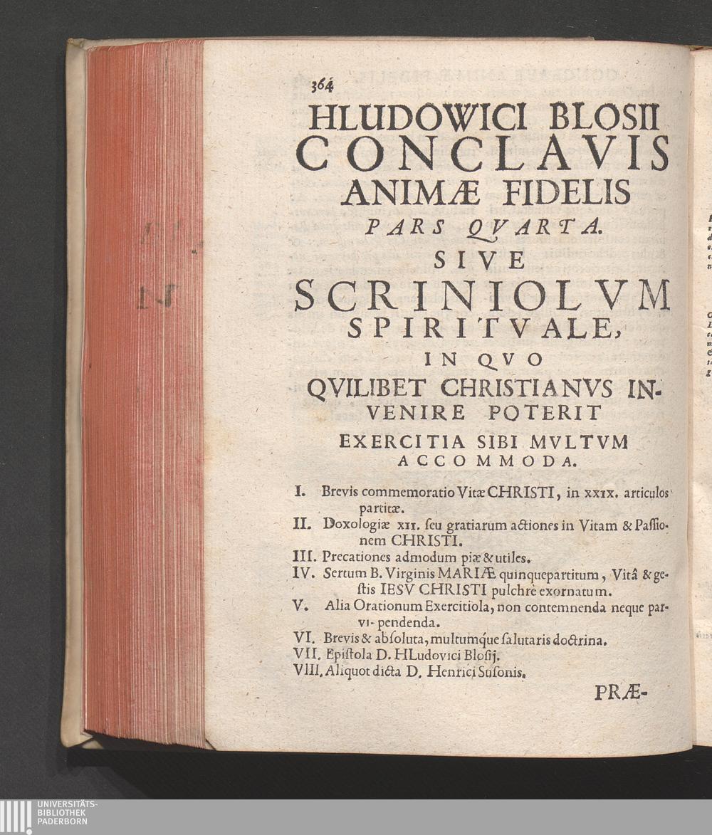 Venerabilis Patris D. Hludowici Blosii Abbatis Lætiensis Ordinis S. P. N. Benedicti Tomus Posterior Margaritum Spirituale