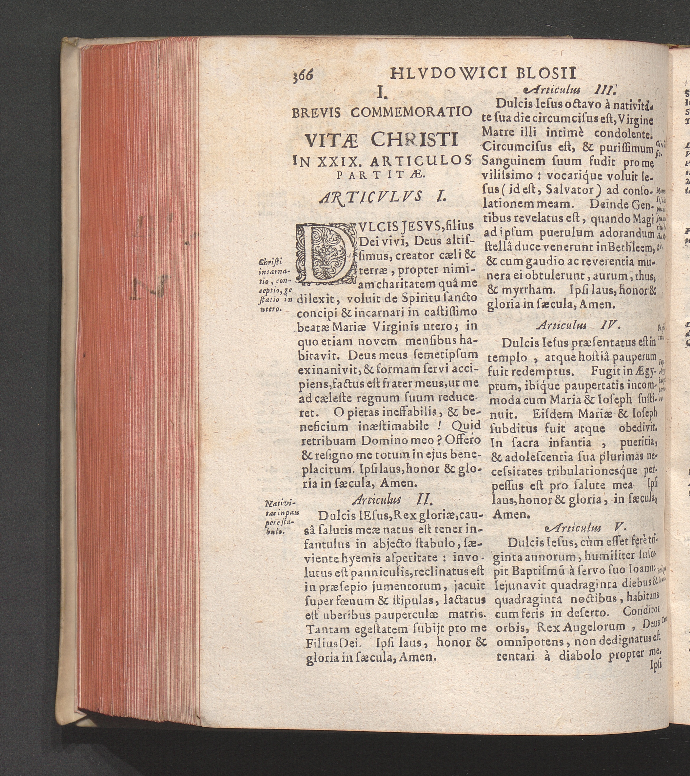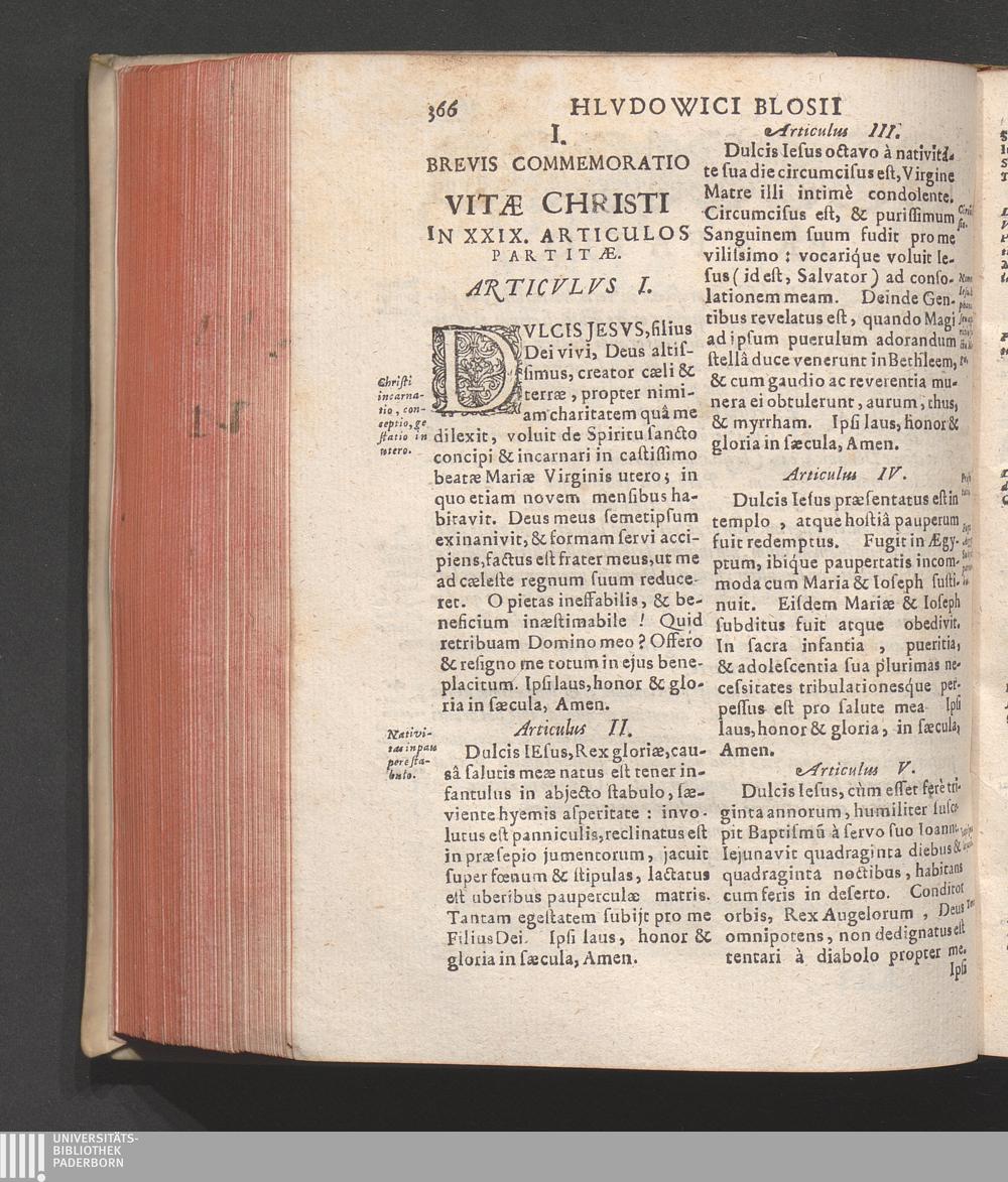 I. Brevis co[m]memoratio Vitæ Christi in XXIX. articulos partitæ.