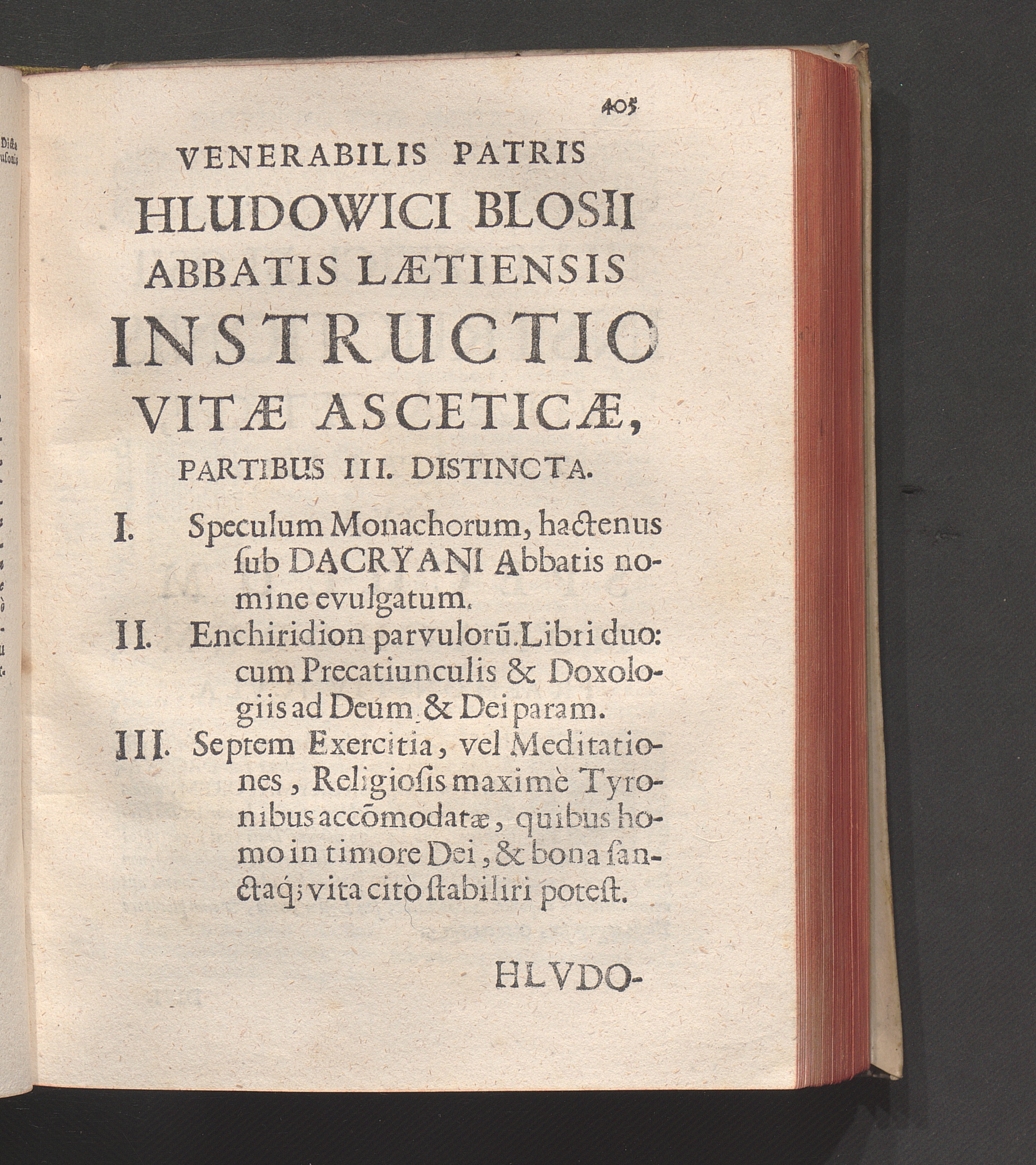 Venerabilis Patris D. Hludowici Blosii Abbatis Lætiensis Ordinis S. P. N. Benedicti[...]