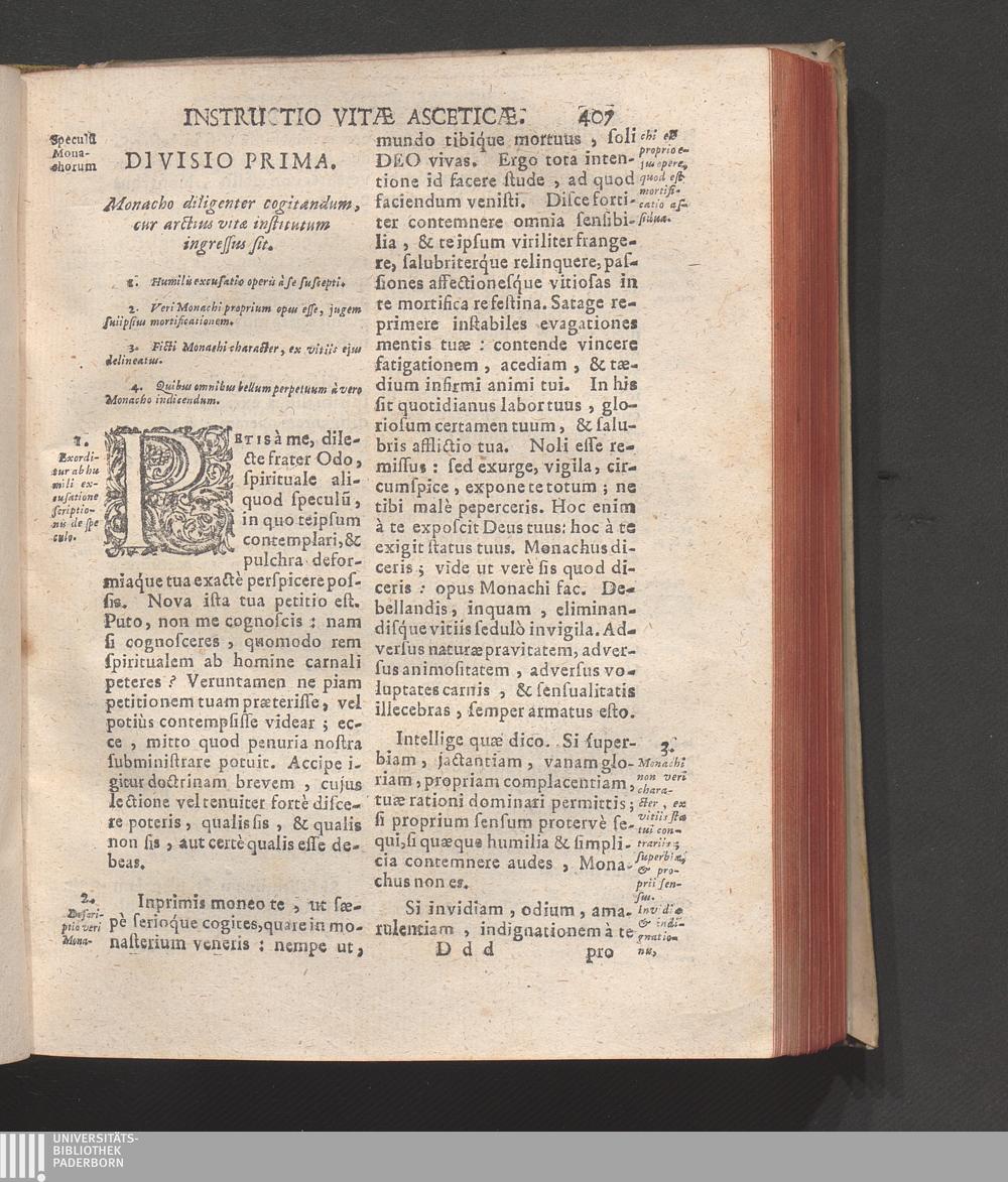 Speculi Monachorum divisio I. Monacho diligenter cogitandum, cur arctius vitæ institutum[...]