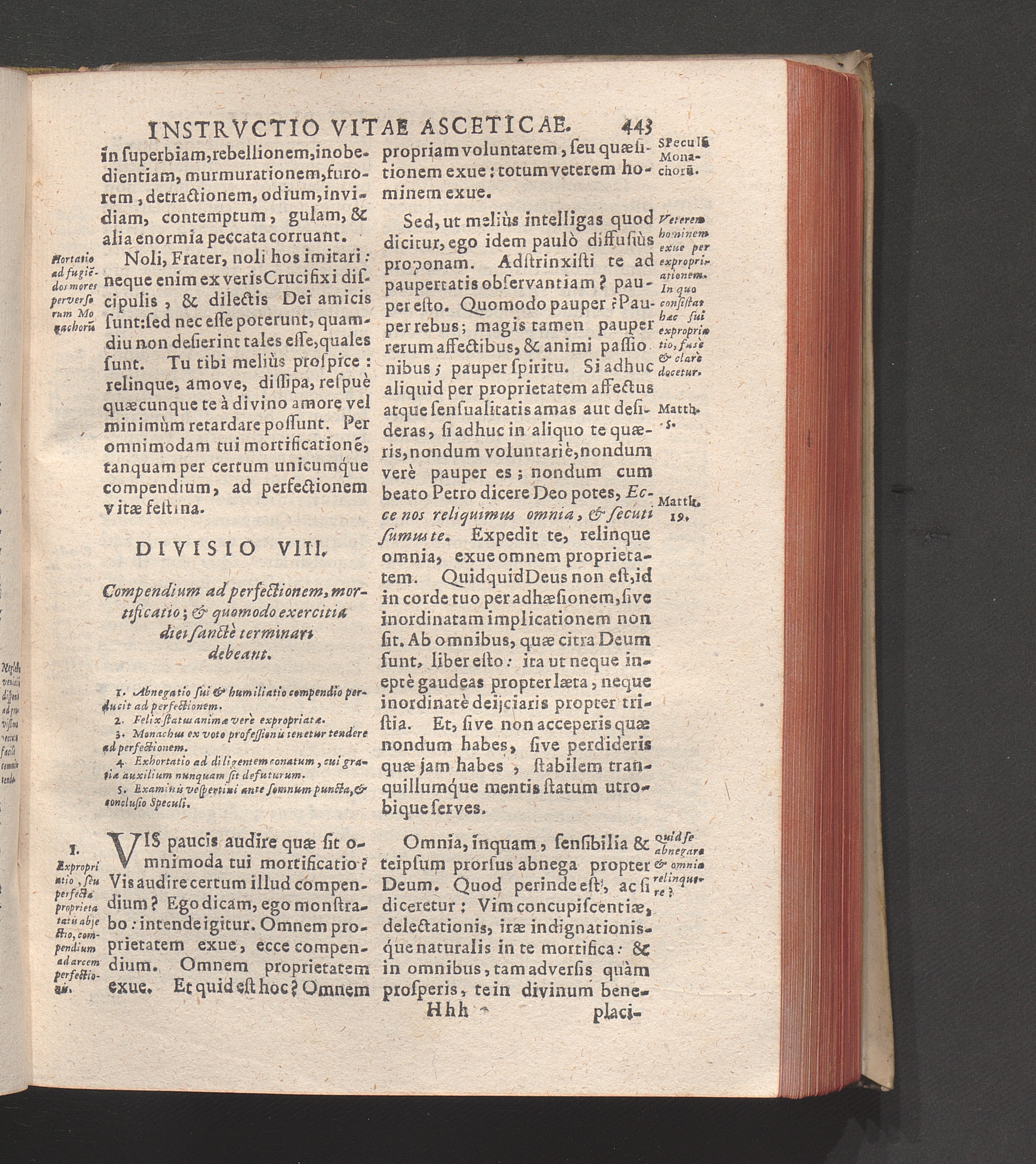 Divisio VIII. Compendium ad perfectionem, mortificatio; & quomodo exercitia diei[...]