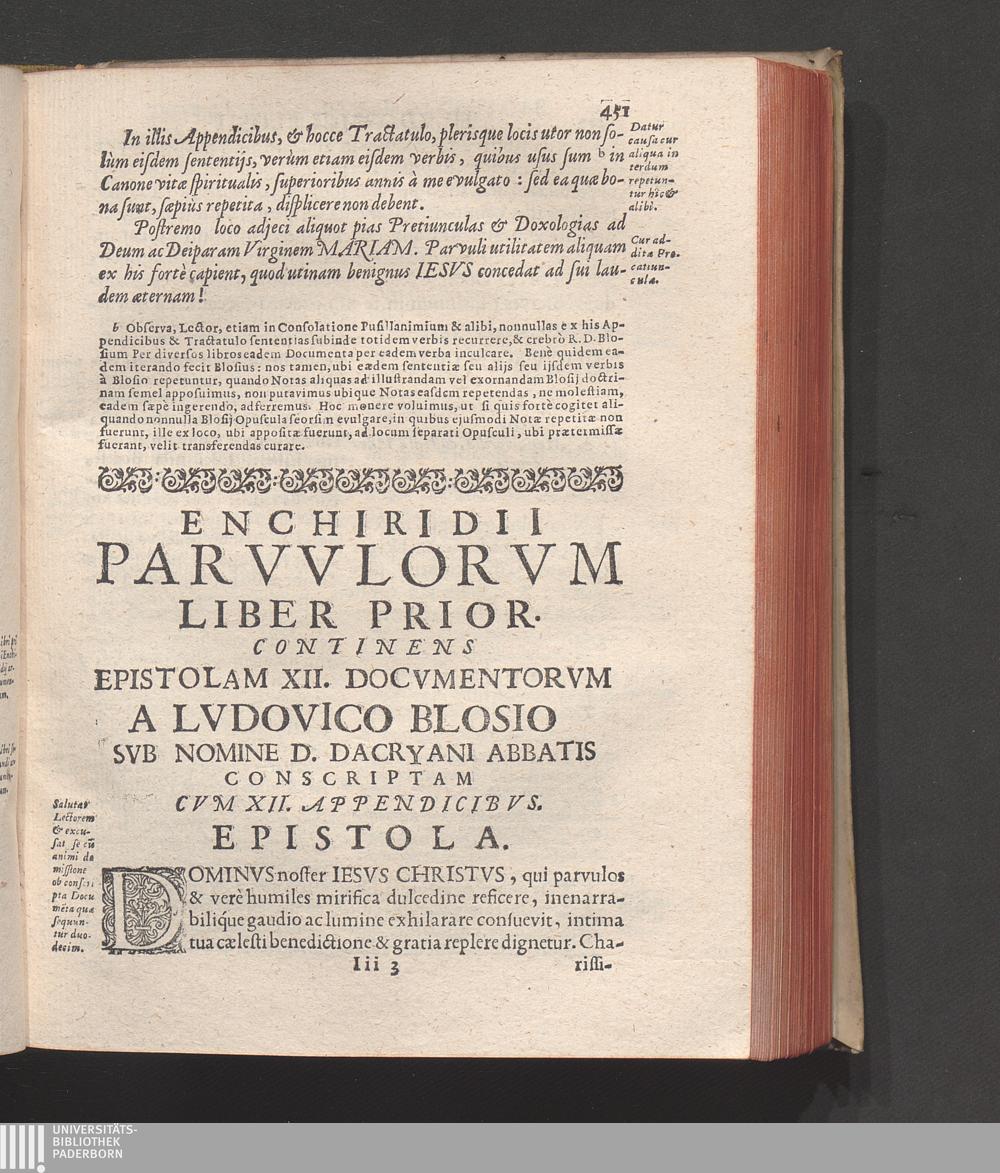 Enchiridii parvulorum liber prior, continens epistolam XII. Documentorum Hludowici[...]