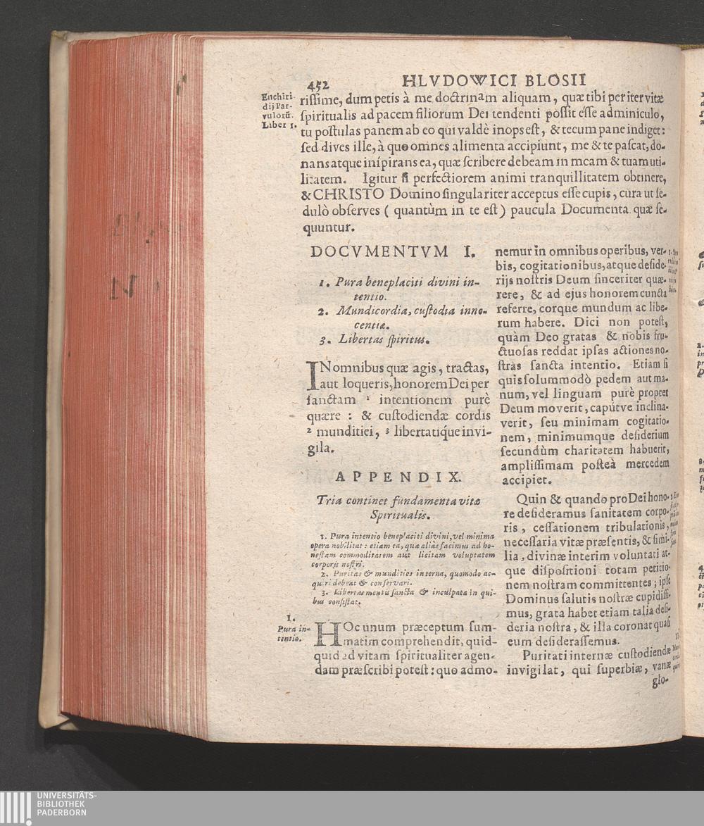 Appendix. Tria continet fundamenta vitæ spiritualis.