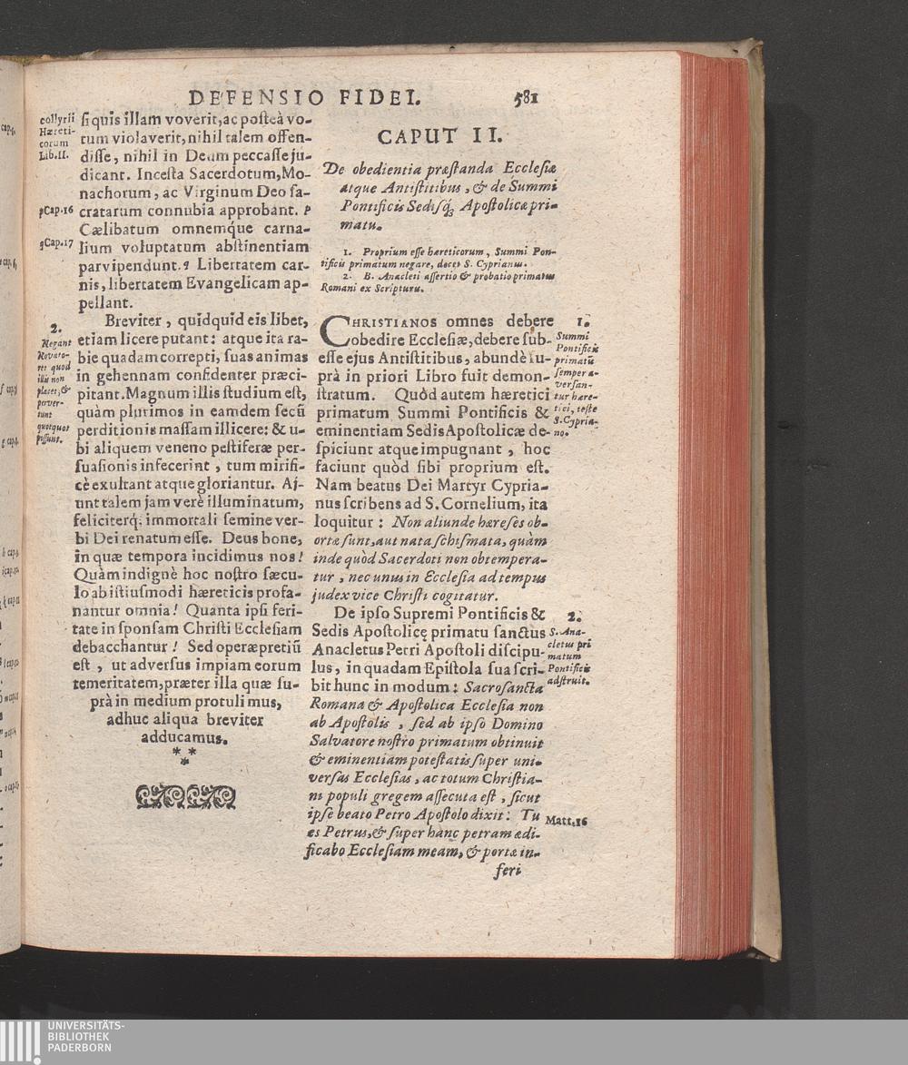Cap. II. De obedientia præstanda Ecclesiæ atque Antistitibus: & de Summi Pontificis[...]