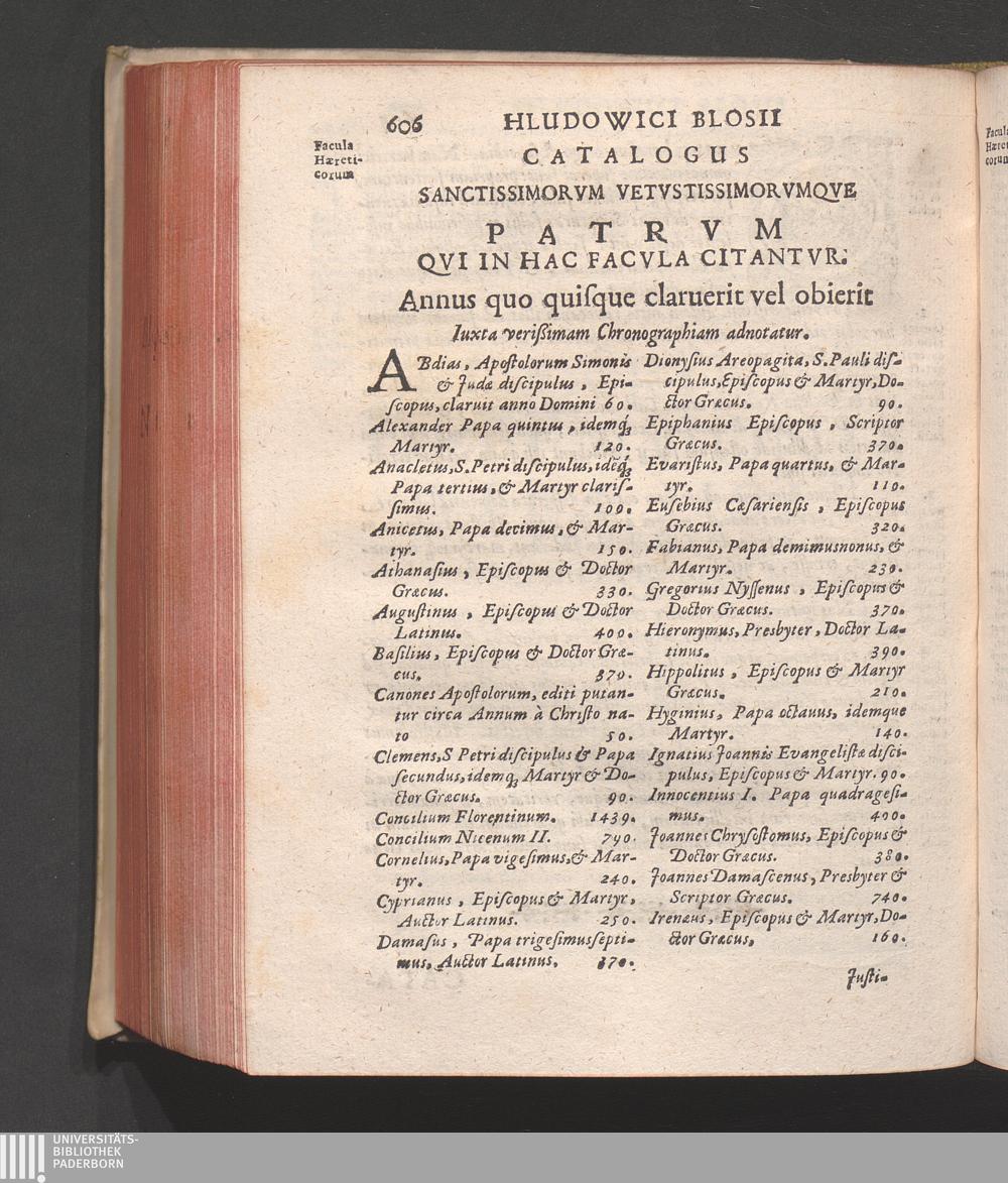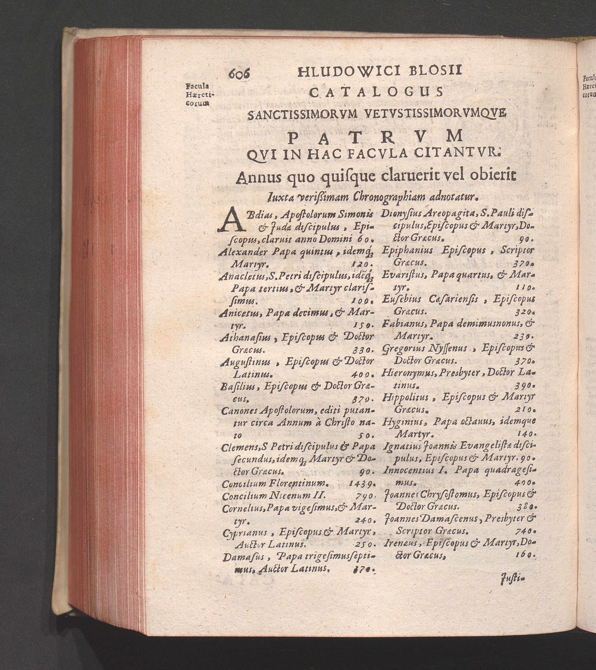 Catalogus sanctissimorum vetustissimorum Patrum, qui in hac Facula c[i]tantur.