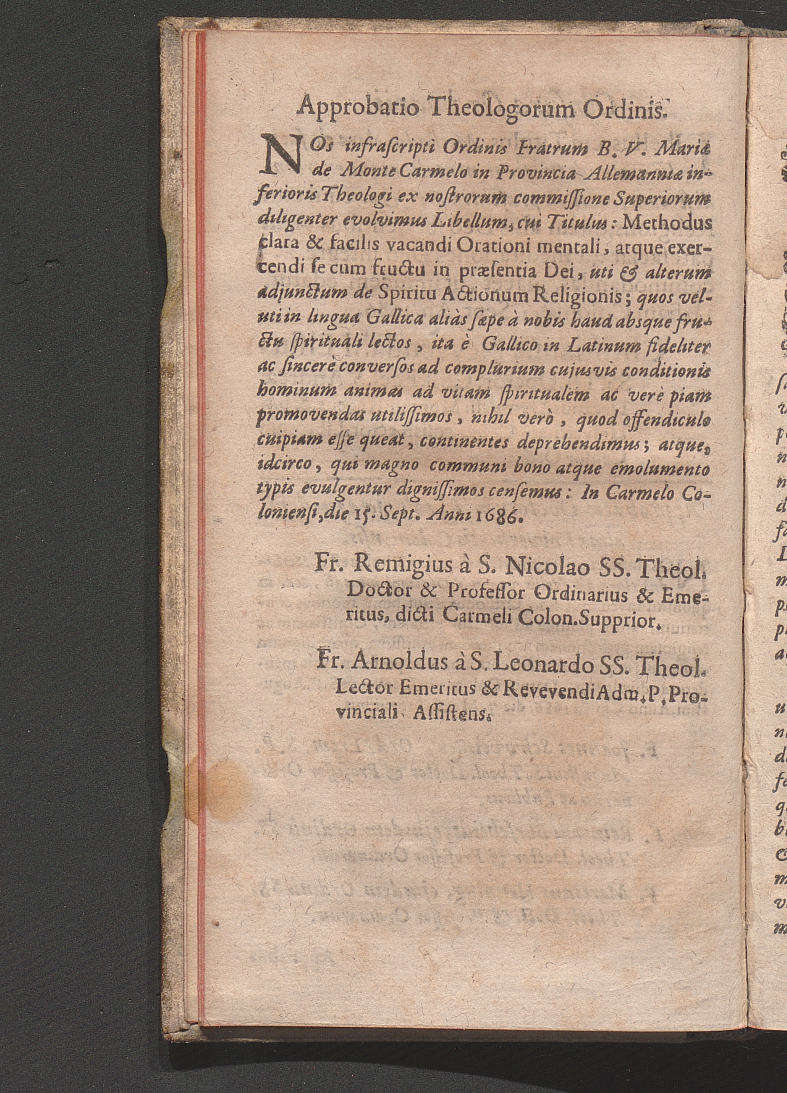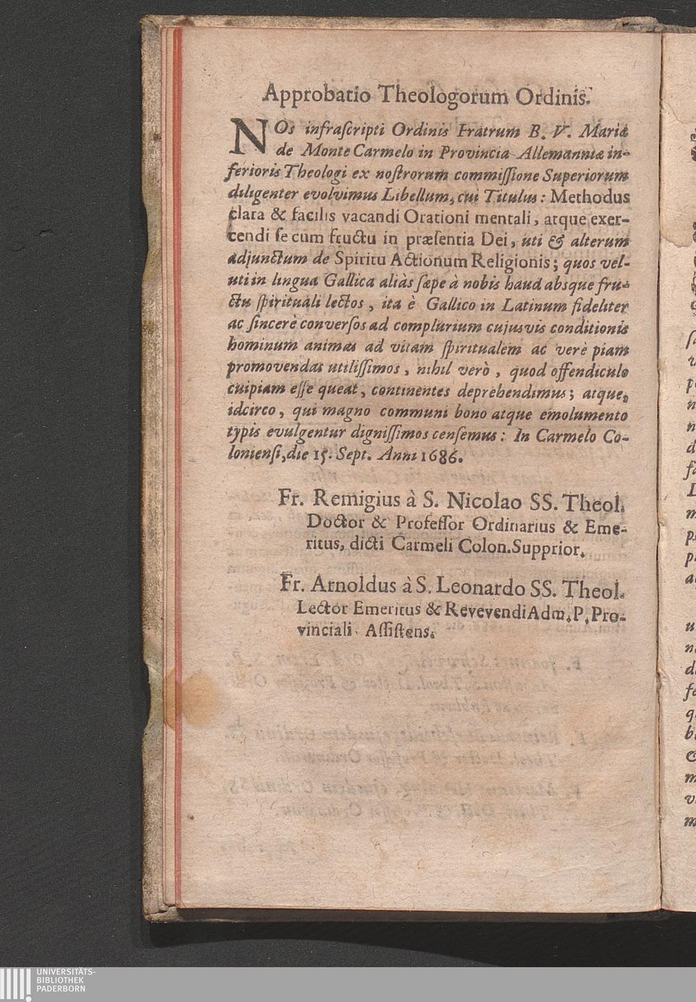 Methodus Clara Et Facilis Vacandi Orationi mentali Atque Exercendi se cum fructu in præsentia Dei / Studio & Operâ Cujusdam Ordinis Fratrum B. V. Mariæ de Monte Carmelo in Provincia Allemanniæ Inferioris Alumni