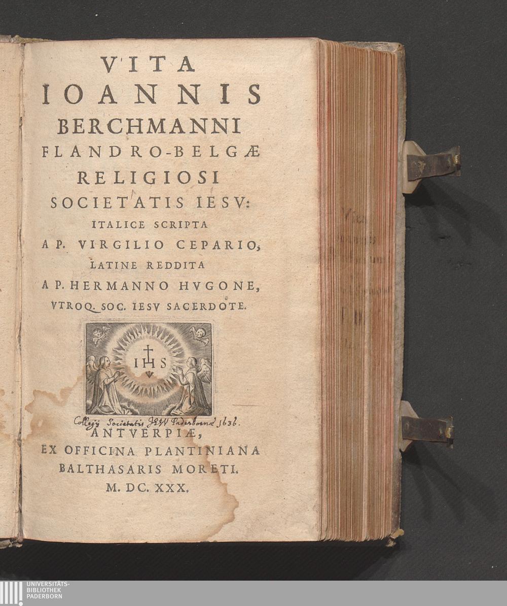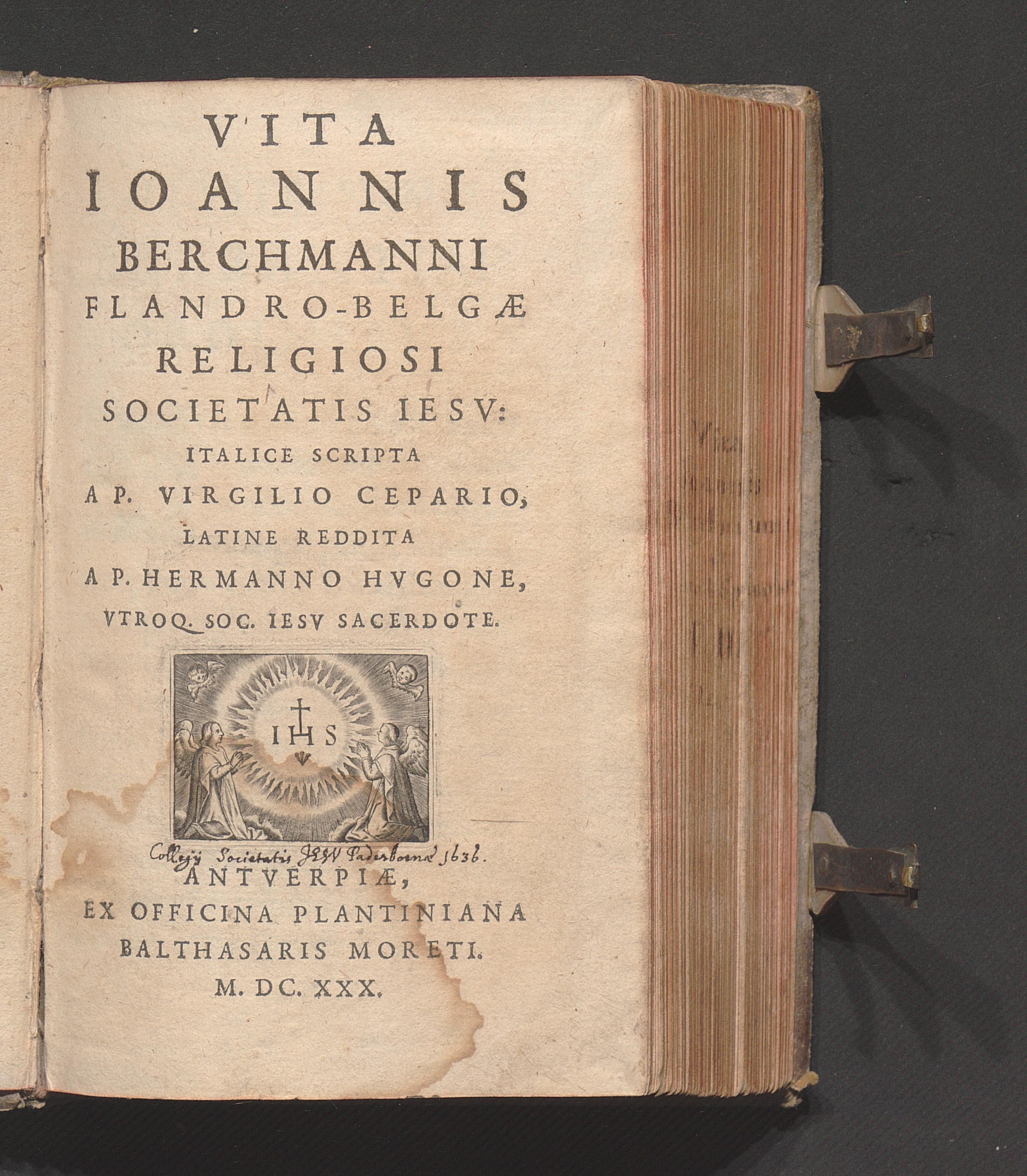 Vita Ioannis Berchmanni Flandro-Belgæ Religiosi Societatis Iesv / Italice Scripta A P. Virgilio Cepario, Latine Reddita A P. Hermanno Hvgone, Vtroq. Soc. Iesv Sacerdote