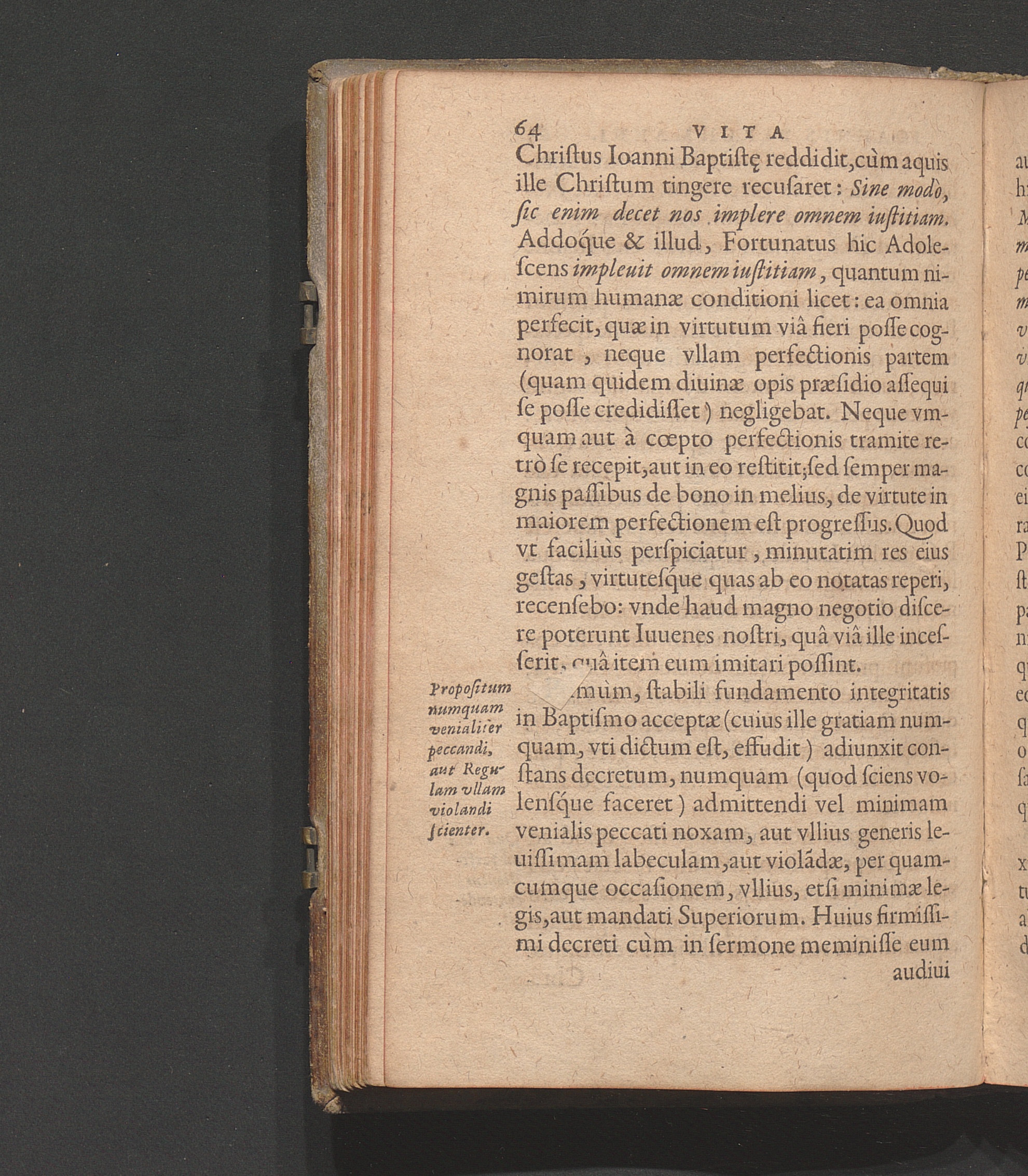Propositum numquam venialiter peccandi, aut Regulam vllam violandi scienter.