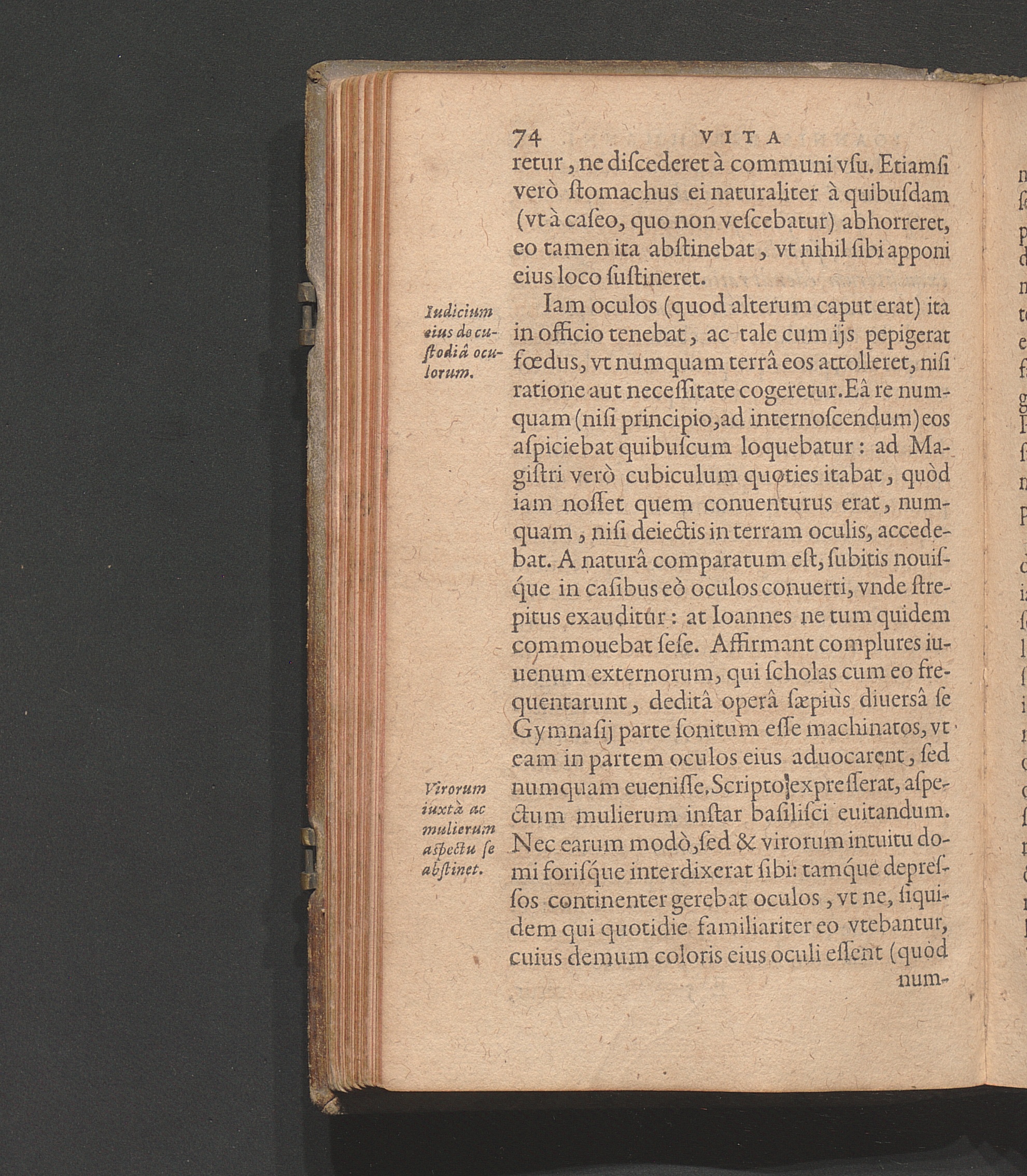Virorum iuxtà ac mulierum aspectu se abstinet.