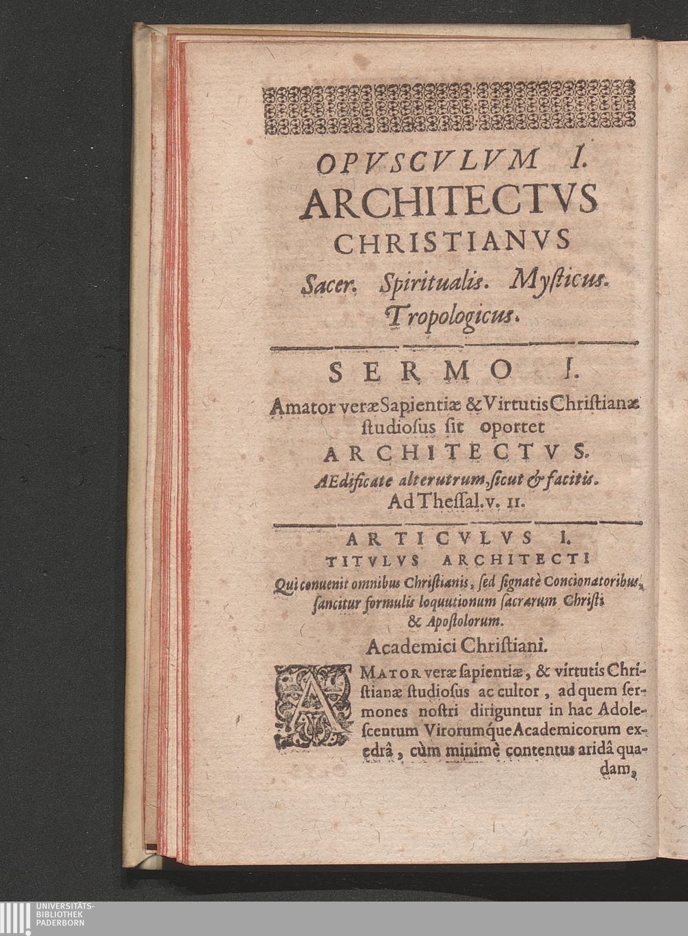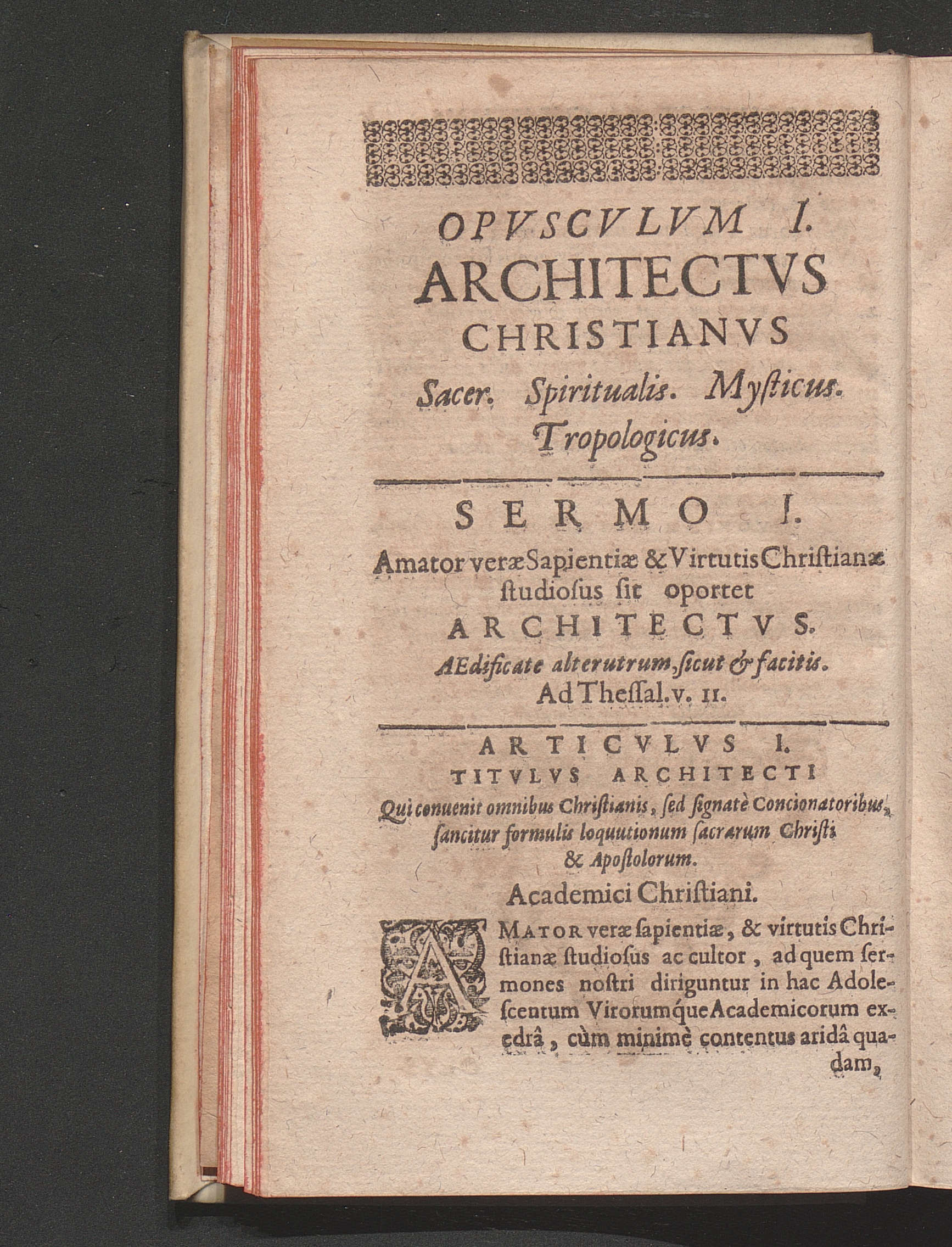 R. P. Maximiliani Sandaei E Societate Iesv Doctoris Theologi Architectvra Christiana : De quâ disseritur Theologicè, Ethicè, Concionatoriè, per analogias ad Architecturam Hebraicam, Græcam, Romanam. Theologia Architectonica A^d Clervm Pastoralem Coloniensem