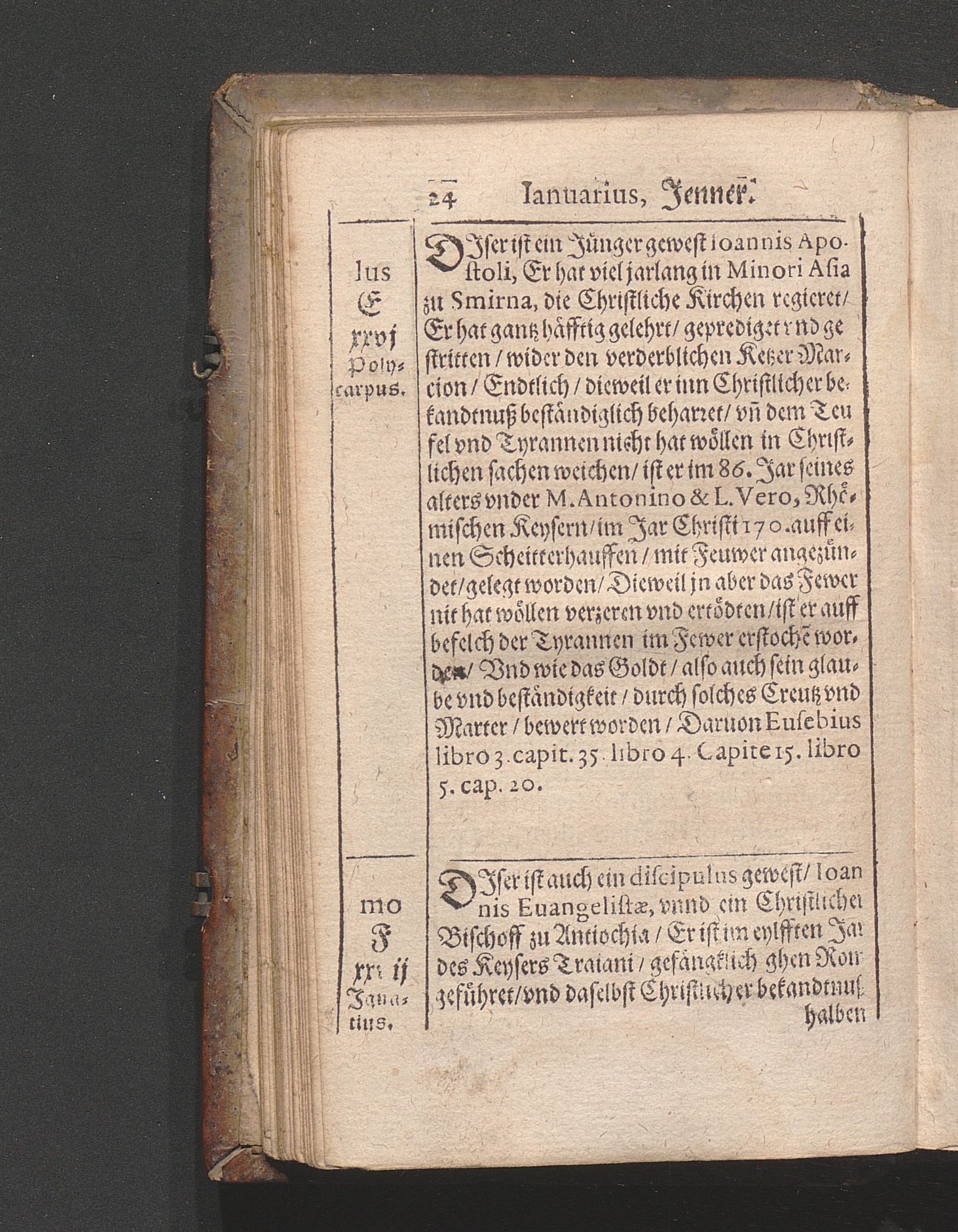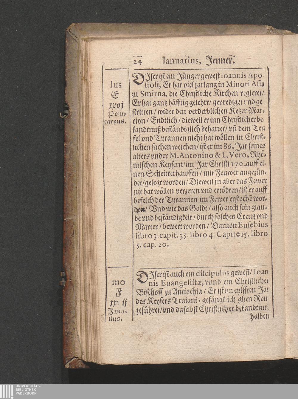 Kirchen Calender : Jn welchem nach Ordenung gemeiner Allmanach/ die Monat/ Tag/ vnnd Fürnembsten Fest des gantzen Jars/ mit jhrem gebrauch/ Auch der heyligen Apostel/ vnd Christlichen Bischoff/ Lehrer/ vnd Märtyrer Glaub/ Leben/ vnd beständige bekandtniß (welche sie mit jhrem eygnen Blut vnd sterben bestättiget habe[n]) / Caspar Goldtwurm Athesinus