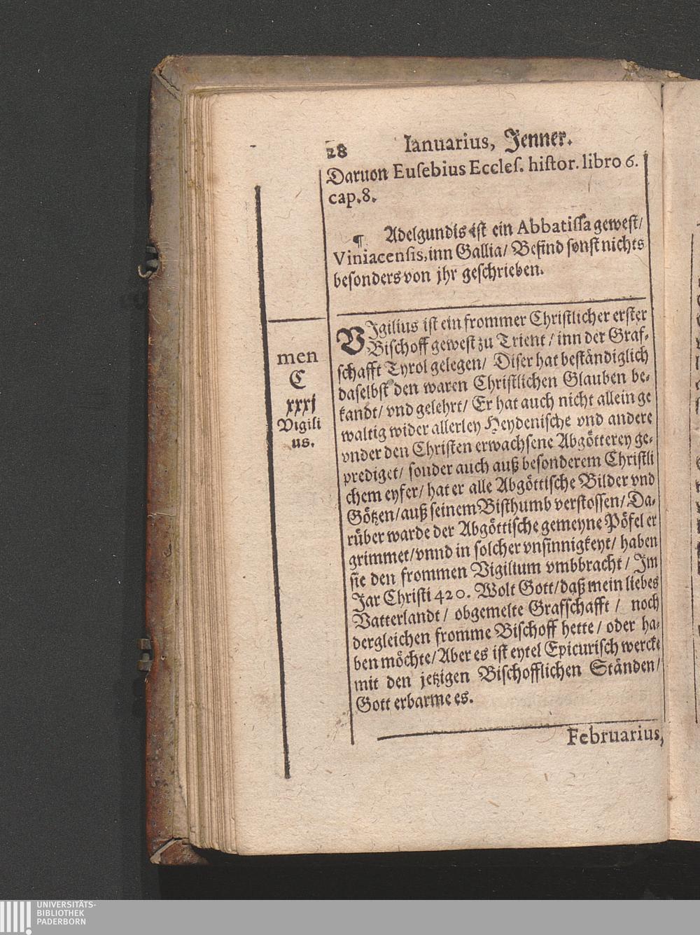 Kirchen Calender : Jn welchem nach Ordenung gemeiner Allmanach/ die Monat/ Tag/ vnnd Fürnembsten Fest des gantzen Jars/ mit jhrem gebrauch/ Auch der heyligen Apostel/ vnd Christlichen Bischoff/ Lehrer/ vnd Märtyrer Glaub/ Leben/ vnd beständige bekandtniß (welche sie mit jhrem eygnen Blut vnd sterben bestättiget habe[n]) / Caspar Goldtwurm Athesinus