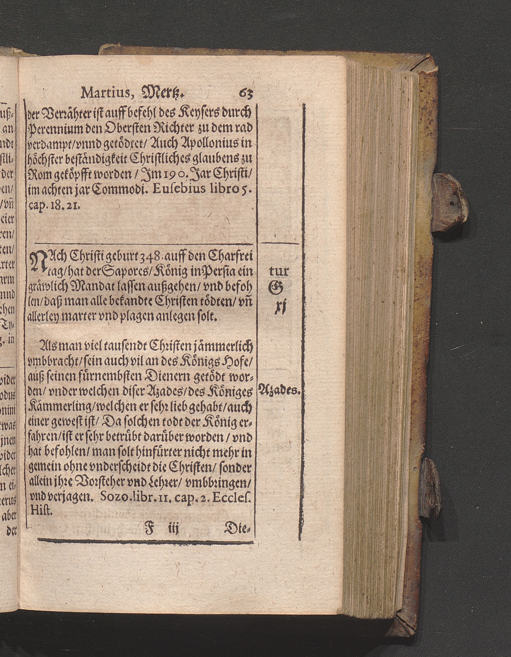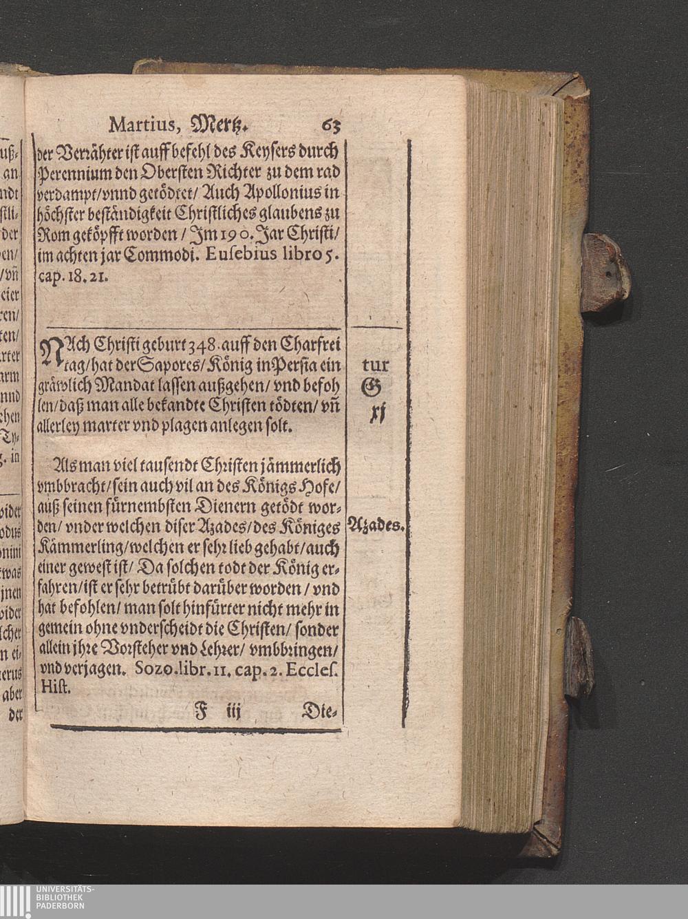 Kirchen Calender : Jn welchem nach Ordenung gemeiner Allmanach/ die Monat/ Tag/ vnnd Fürnembsten Fest des gantzen Jars/ mit jhrem gebrauch/ Auch der heyligen Apostel/ vnd Christlichen Bischoff/ Lehrer/ vnd Märtyrer Glaub/ Leben/ vnd beständige bekandtniß (welche sie mit jhrem eygnen Blut vnd sterben bestättiget habe[n]) / Caspar Goldtwurm Athesinus