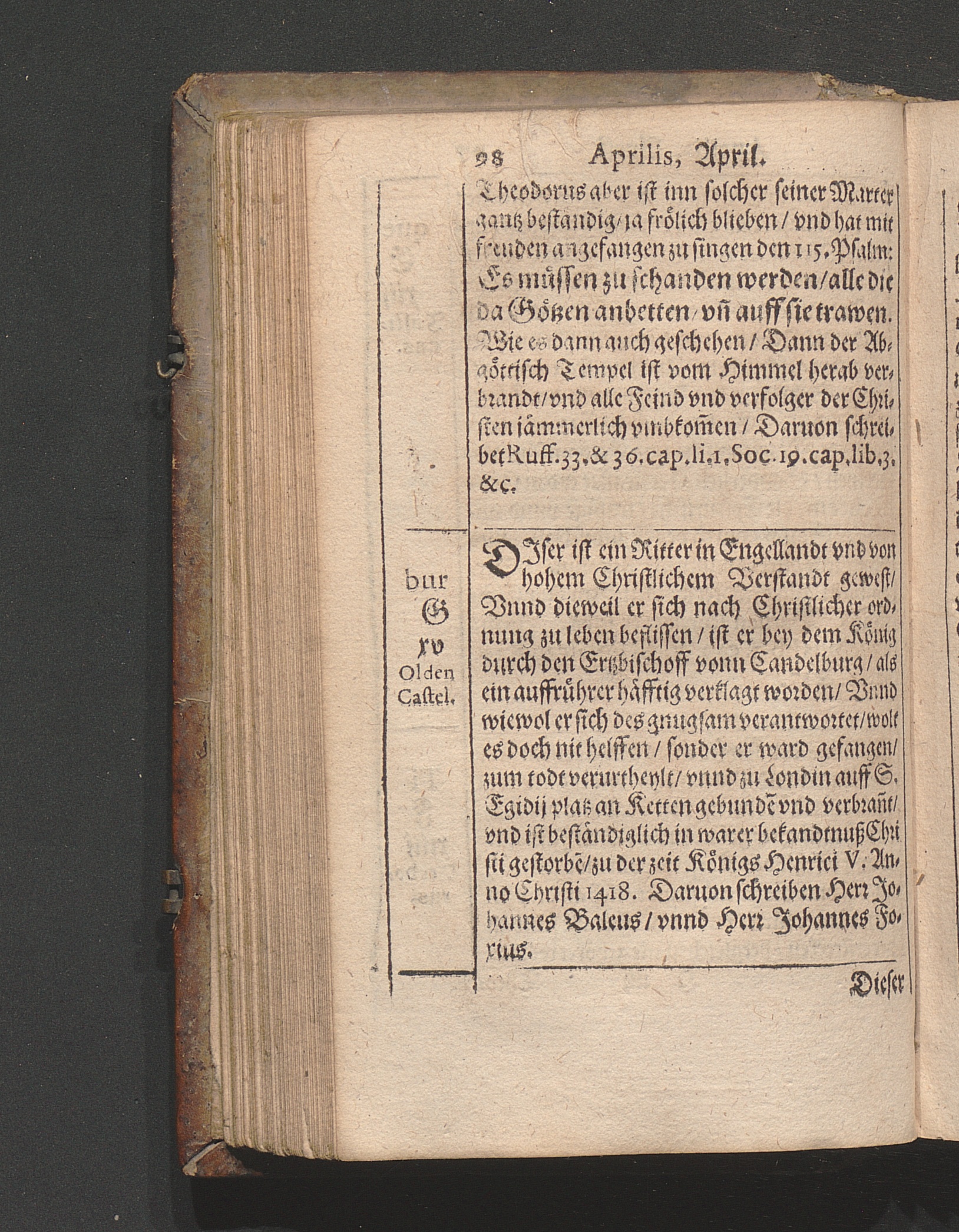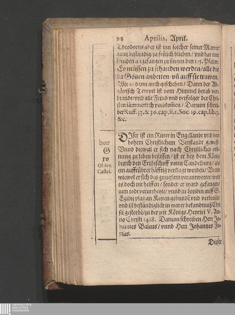 Kirchen Calender : Jn welchem nach Ordenung gemeiner Allmanach/ die Monat/ Tag/ vnnd Fürnembsten Fest des gantzen Jars/ mit jhrem gebrauch/ Auch der heyligen Apostel/ vnd Christlichen Bischoff/ Lehrer/ vnd Märtyrer Glaub/ Leben/ vnd beständige bekandtniß (welche sie mit jhrem eygnen Blut vnd sterben bestättiget habe[n]) / Caspar Goldtwurm Athesinus