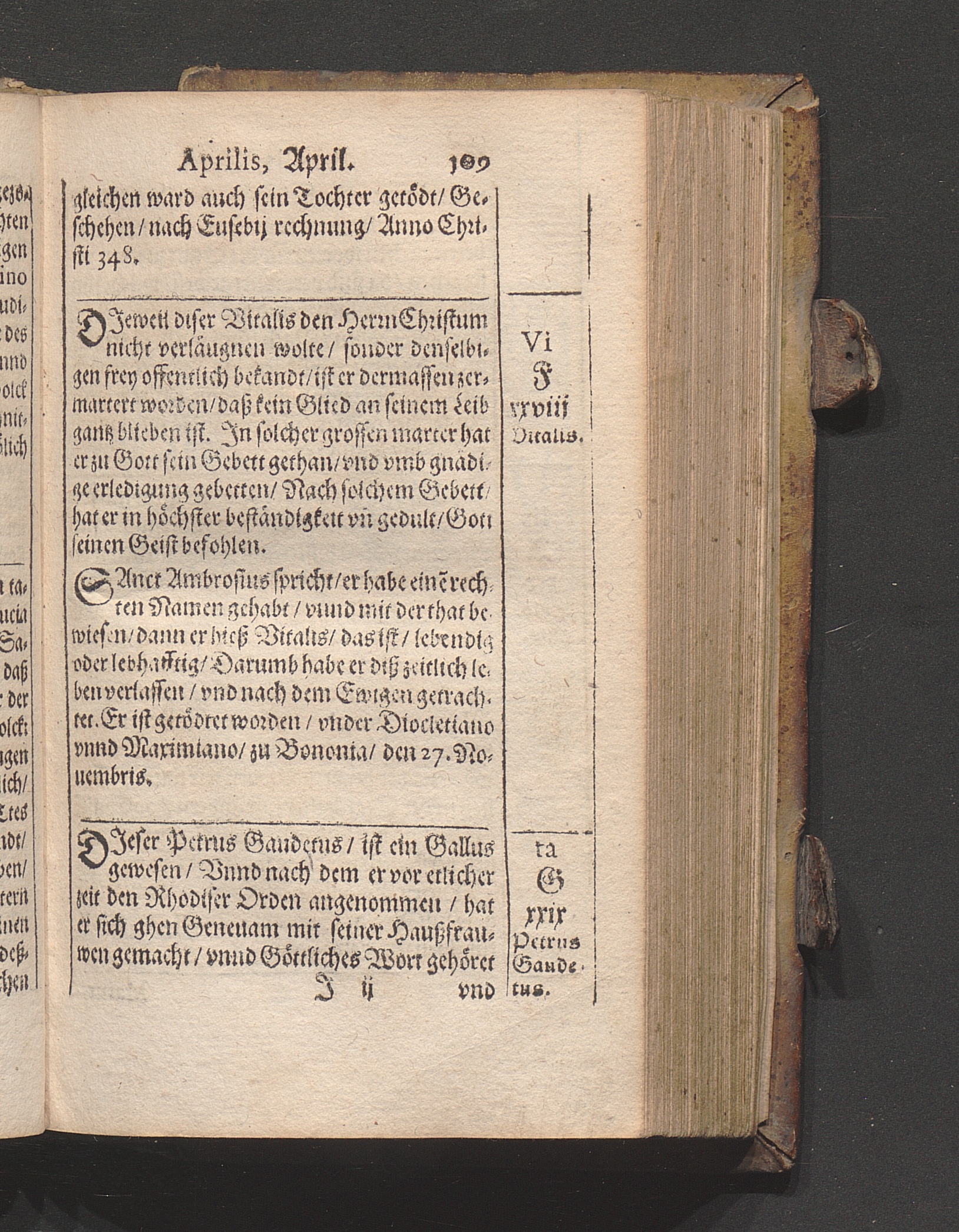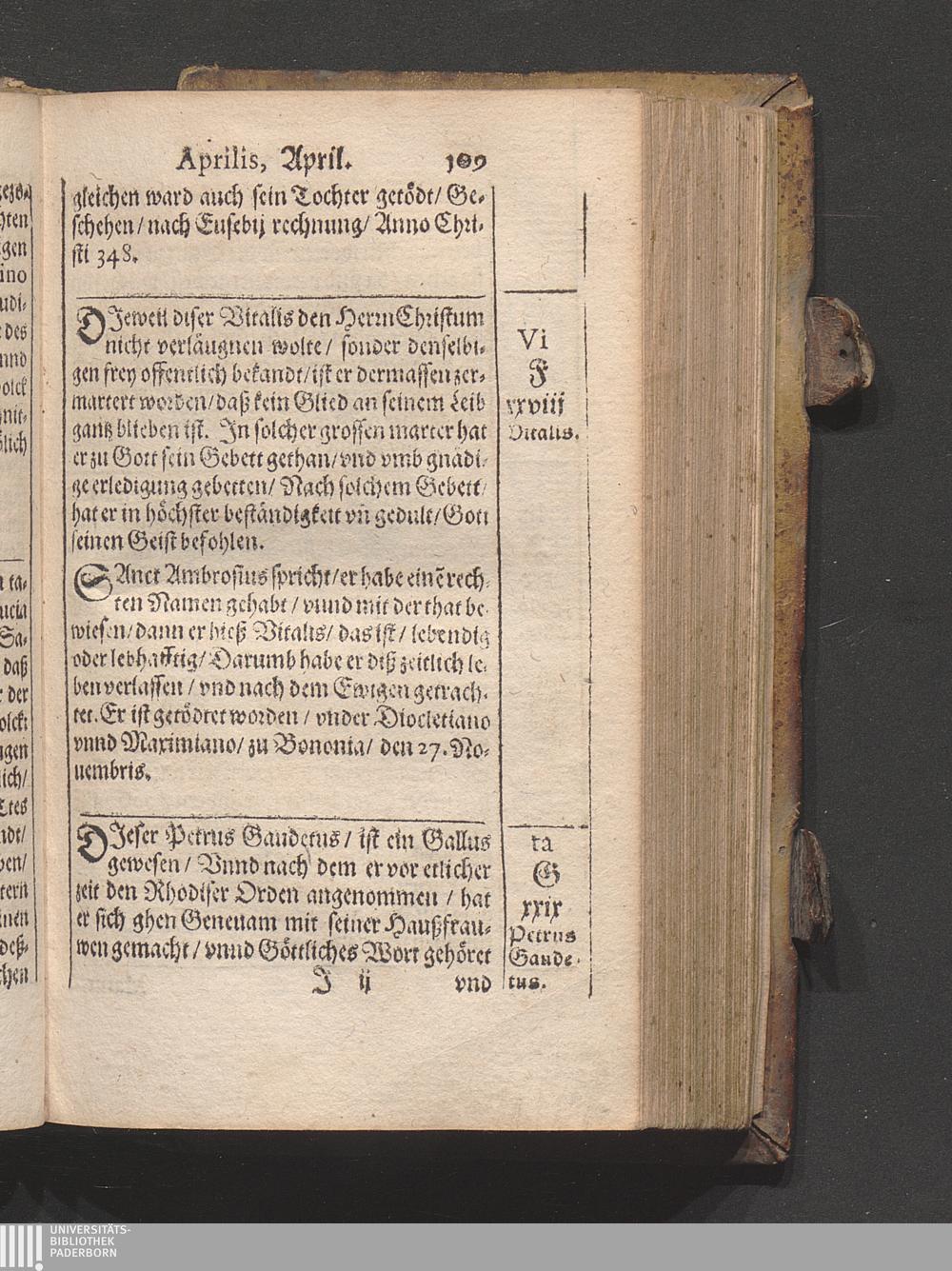 Kirchen Calender : Jn welchem nach Ordenung gemeiner Allmanach/ die Monat/ Tag/ vnnd Fürnembsten Fest des gantzen Jars/ mit jhrem gebrauch/ Auch der heyligen Apostel/ vnd Christlichen Bischoff/ Lehrer/ vnd Märtyrer Glaub/ Leben/ vnd beständige bekandtniß (welche sie mit jhrem eygnen Blut vnd sterben bestättiget habe[n]) / Caspar Goldtwurm Athesinus
