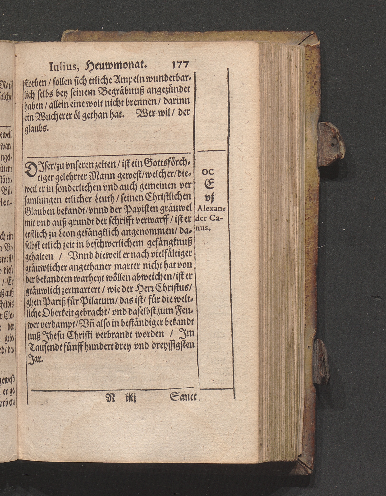 Kirchen Calender : Jn welchem nach Ordenung gemeiner Allmanach/ die Monat/ Tag/ vnnd Fürnembsten Fest des gantzen Jars/ mit jhrem gebrauch/ Auch der heyligen Apostel/ vnd Christlichen Bischoff/ Lehrer/ vnd Märtyrer Glaub/ Leben/ vnd beständige bekandtniß (welche sie mit jhrem eygnen Blut vnd sterben bestättiget habe[n]) / Caspar Goldtwurm Athesinus