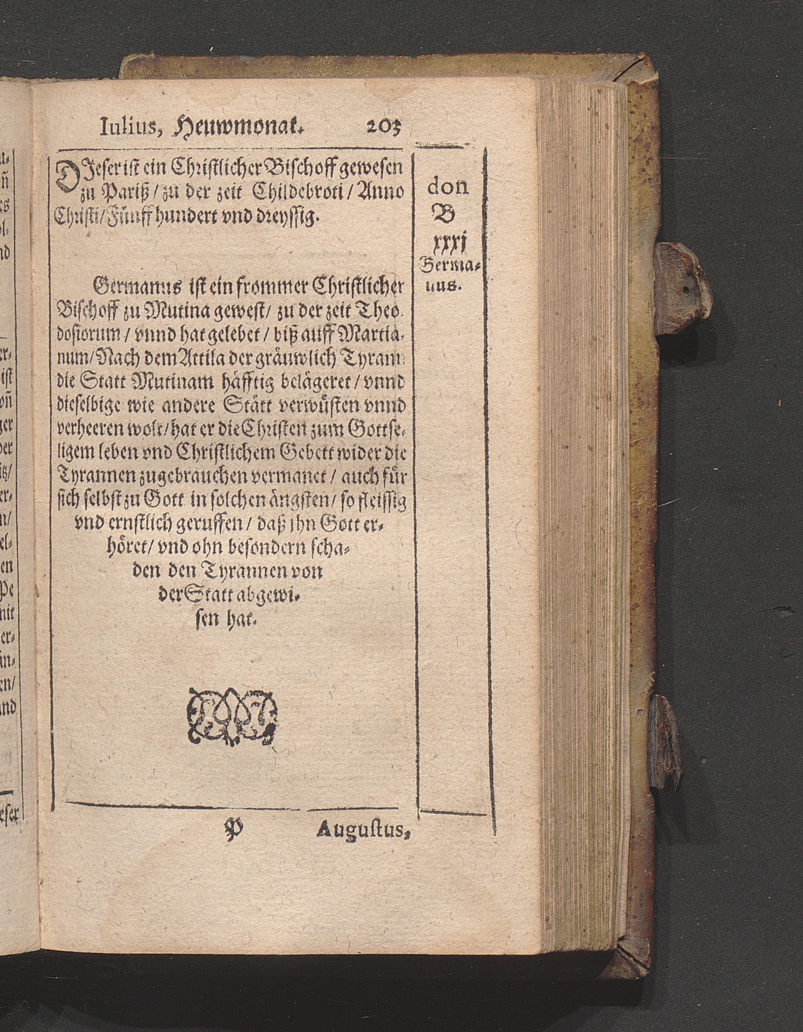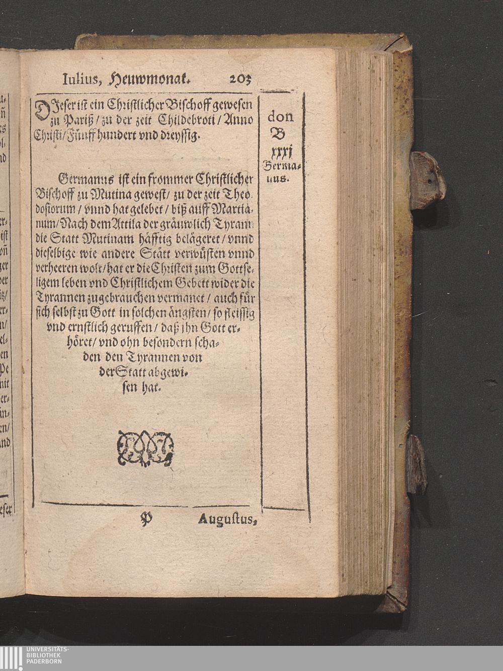 Kirchen Calender : Jn welchem nach Ordenung gemeiner Allmanach/ die Monat/ Tag/ vnnd Fürnembsten Fest des gantzen Jars/ mit jhrem gebrauch/ Auch der heyligen Apostel/ vnd Christlichen Bischoff/ Lehrer/ vnd Märtyrer Glaub/ Leben/ vnd beständige bekandtniß (welche sie mit jhrem eygnen Blut vnd sterben bestättiget habe[n]) / Caspar Goldtwurm Athesinus