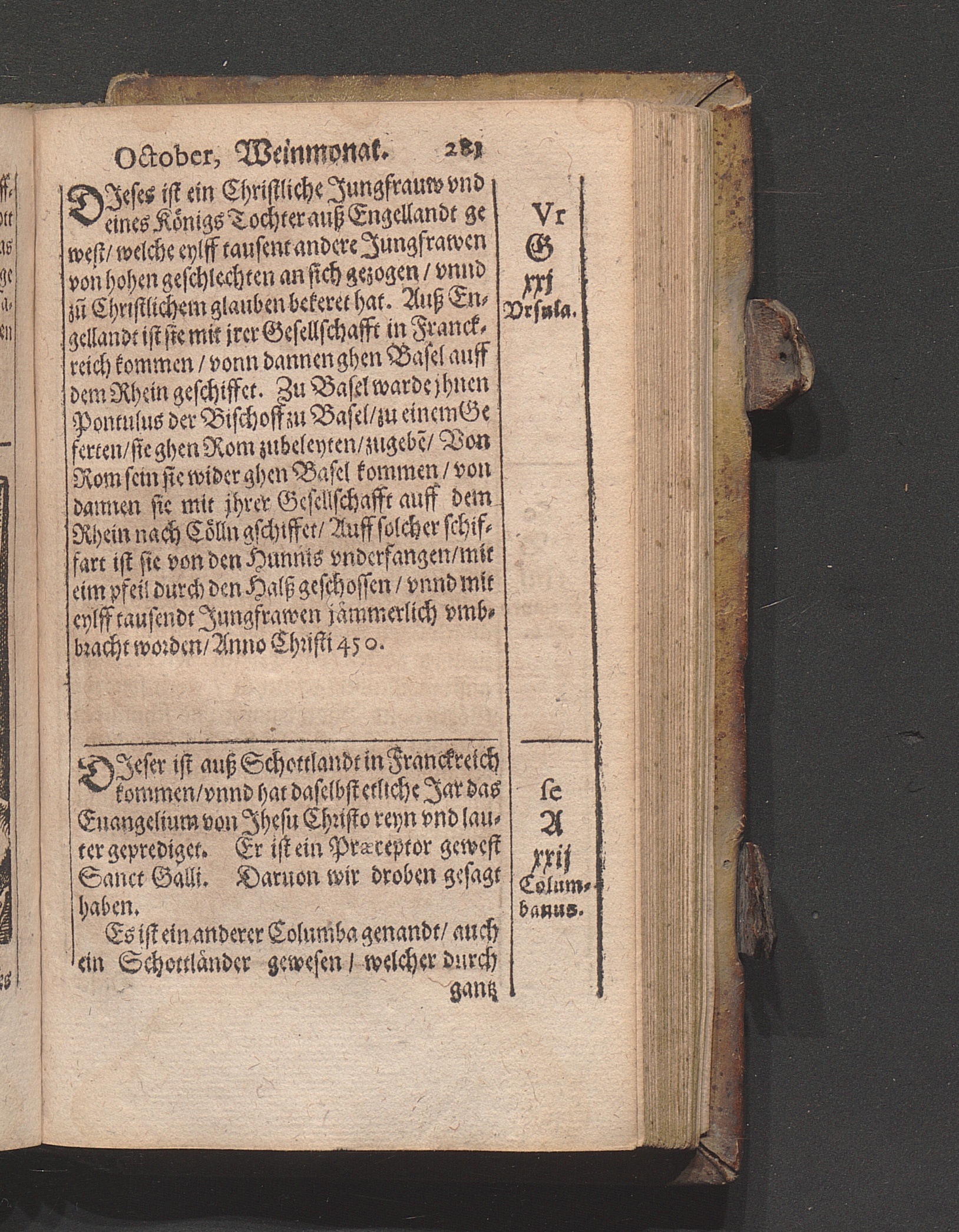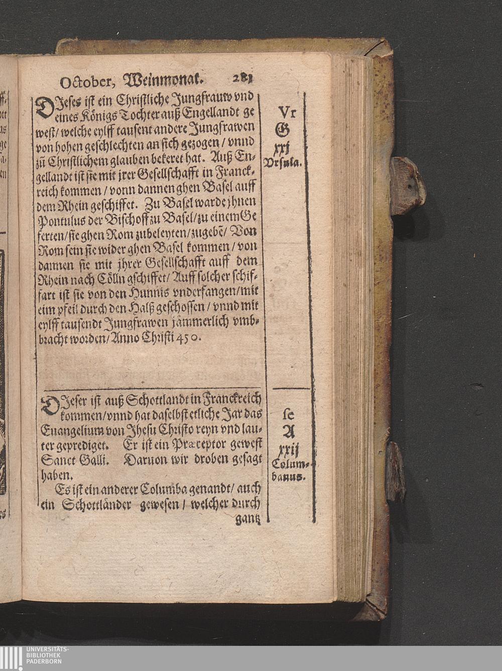 Kirchen Calender : Jn welchem nach Ordenung gemeiner Allmanach/ die Monat/ Tag/ vnnd Fürnembsten Fest des gantzen Jars/ mit jhrem gebrauch/ Auch der heyligen Apostel/ vnd Christlichen Bischoff/ Lehrer/ vnd Märtyrer Glaub/ Leben/ vnd beständige bekandtniß (welche sie mit jhrem eygnen Blut vnd sterben bestättiget habe[n]) / Caspar Goldtwurm Athesinus