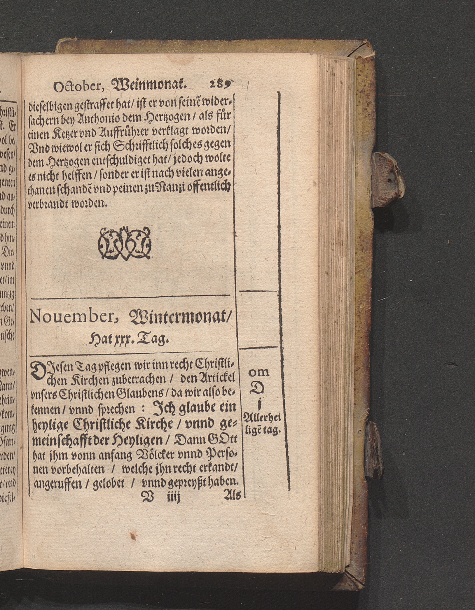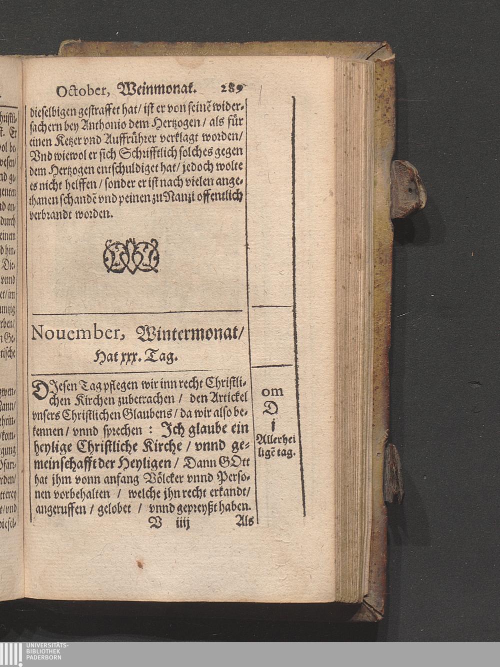 Kirchen Calender : Jn welchem nach Ordenung gemeiner Allmanach/ die Monat/ Tag/ vnnd Fürnembsten Fest des gantzen Jars/ mit jhrem gebrauch/ Auch der heyligen Apostel/ vnd Christlichen Bischoff/ Lehrer/ vnd Märtyrer Glaub/ Leben/ vnd beständige bekandtniß (welche sie mit jhrem eygnen Blut vnd sterben bestättiget habe[n]) / Caspar Goldtwurm Athesinus