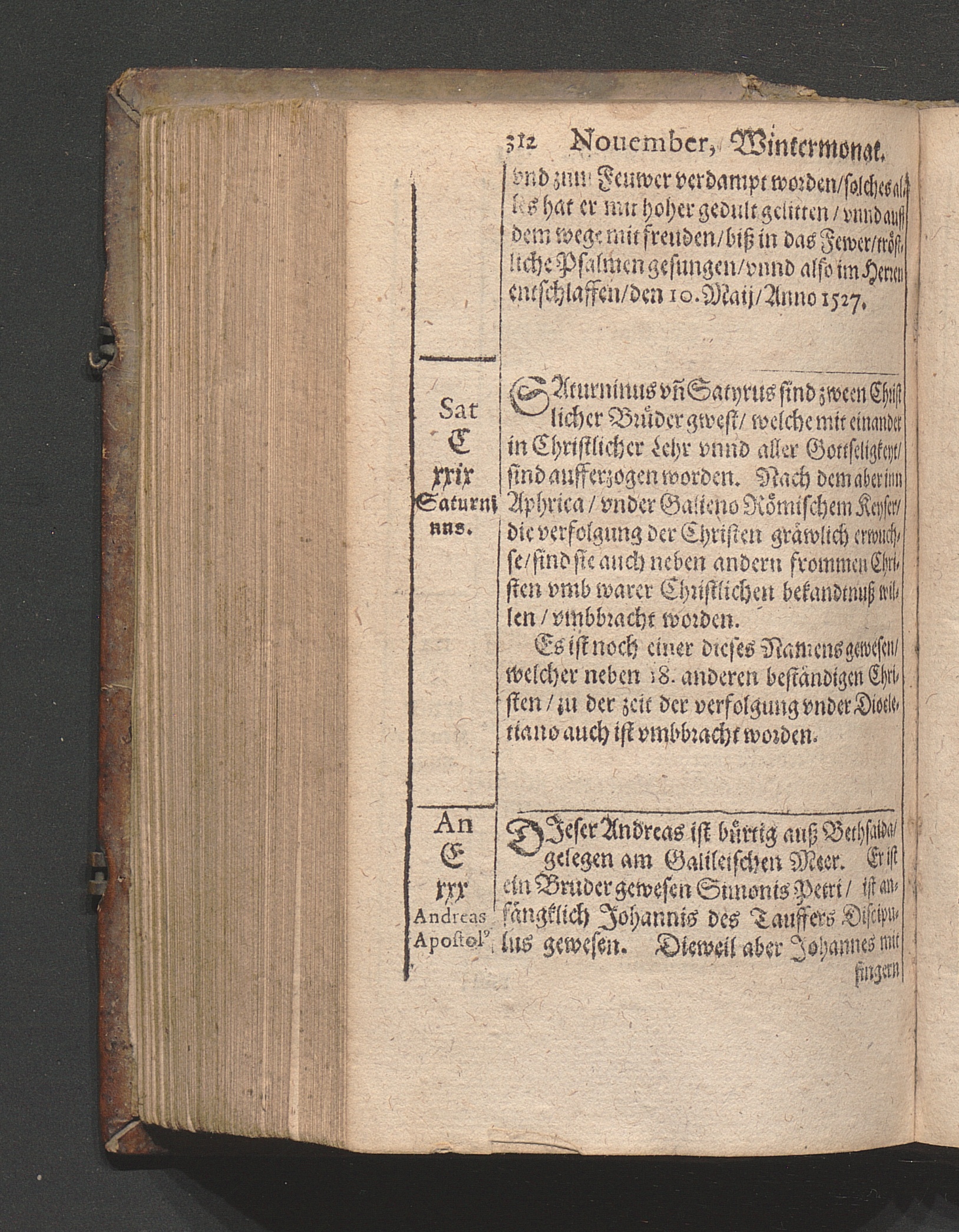Kirchen Calender : Jn welchem nach Ordenung gemeiner Allmanach/ die Monat/ Tag/ vnnd Fürnembsten Fest des gantzen Jars/ mit jhrem gebrauch/ Auch der heyligen Apostel/ vnd Christlichen Bischoff/ Lehrer/ vnd Märtyrer Glaub/ Leben/ vnd beständige bekandtniß (welche sie mit jhrem eygnen Blut vnd sterben bestättiget habe[n]) / Caspar Goldtwurm Athesinus