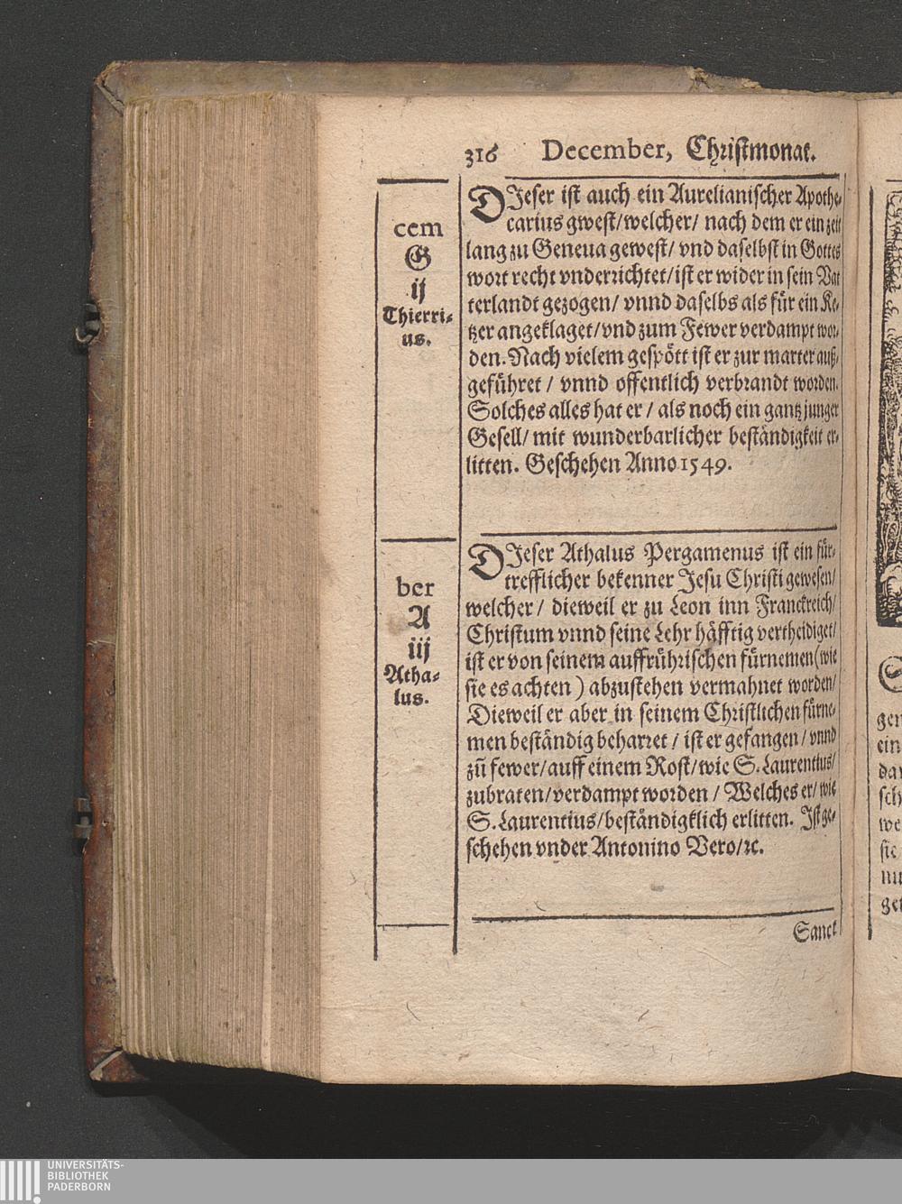 Kirchen Calender : Jn welchem nach Ordenung gemeiner Allmanach/ die Monat/ Tag/ vnnd Fürnembsten Fest des gantzen Jars/ mit jhrem gebrauch/ Auch der heyligen Apostel/ vnd Christlichen Bischoff/ Lehrer/ vnd Märtyrer Glaub/ Leben/ vnd beständige bekandtniß (welche sie mit jhrem eygnen Blut vnd sterben bestättiget habe[n]) / Caspar Goldtwurm Athesinus