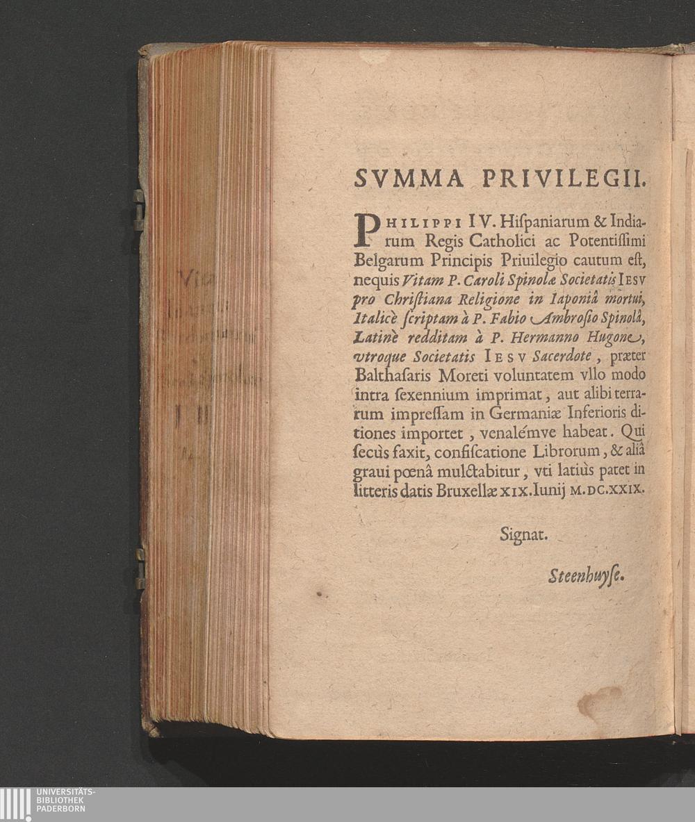 Vita P. Caroli Spinolæ Societatis Iesv, Pro Christiana Religione In Iaponia Mortvi / Italice Scripta A P. Fabio Ambrosio Spinola, Latine Reddita A P. Hermanno Hvgone, Vtroq[ue] Soc. Iesv Sacerdote