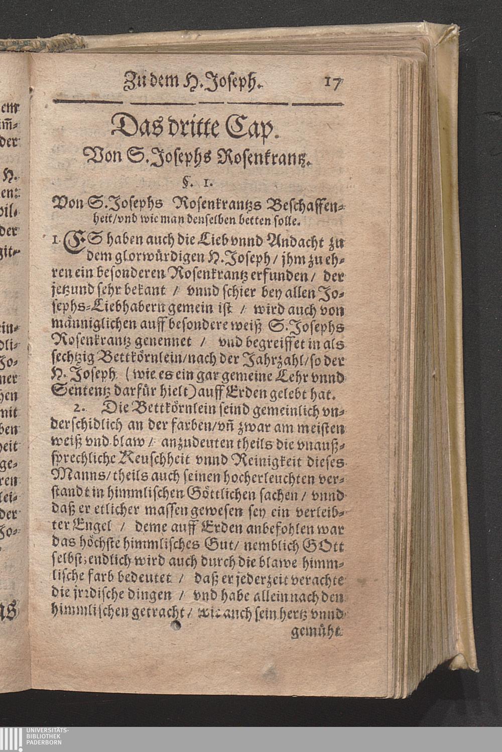 Das dritte Cap. Von S. Josephs Rosenkrantz.