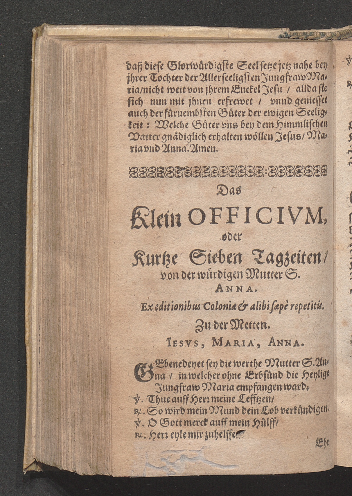 Das Klein Officivm, oder Kurtze Sieben Tagzeiten/ von der würdigen Mutter S. Anna.