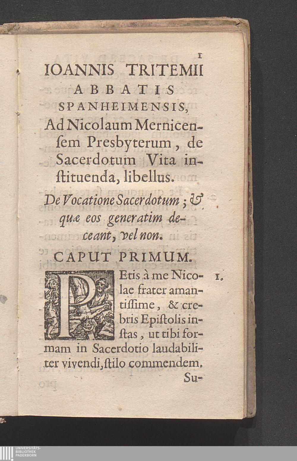 Ioannis Tritemii Tractatvs De Sacerdotvm Vita Recte Institvenda / Iussu & authoritate Rev[erendissi]mi & Illust[rissi]mi Principis ac D[omi]ni, D[omi]ni Francisci Guilielmi, Episcopi Ratisbonensis, Osnabrugensis, Mindensis & Verdensis, &c. Pro usu & commoditate sui Cleri recens editus