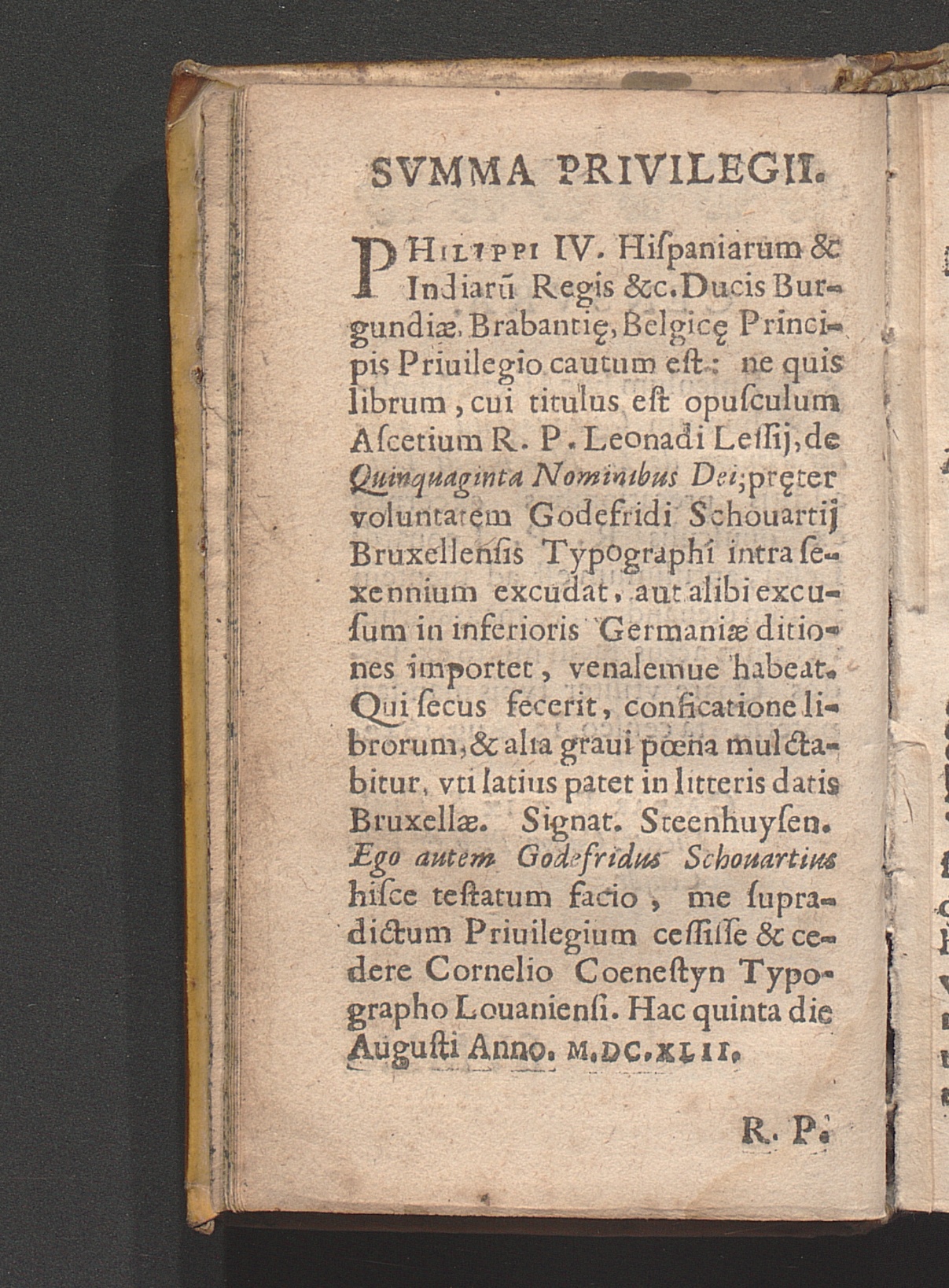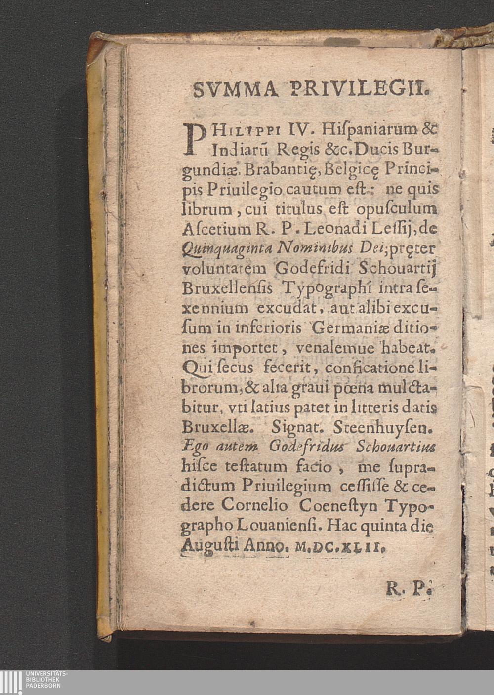 R. P. Leonardi Lessii E Societate Iesv Theologi Opusculum Asceticum Posthumum : Quinquaginta Considerationum De L. Nominibvs Dei. Sev Diuinarum Perfectionum Compendiaria expositio ; Additis circa easdem precationibus ex opusculis eiusdem Auctoris excerptis