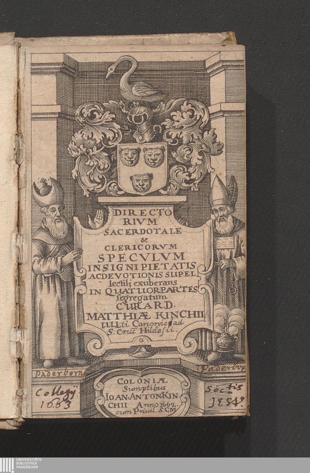 Directorivm Sacerdotale & Clericorum Specvlvm Insigni Pietatis Ac Devotionis Supellectili exuberans : In Quatuor Partes segregatum ... / Cura R. D. Matthiæ Kinchii J. U. Lti. Canonico ad S. Crucem Hildesii