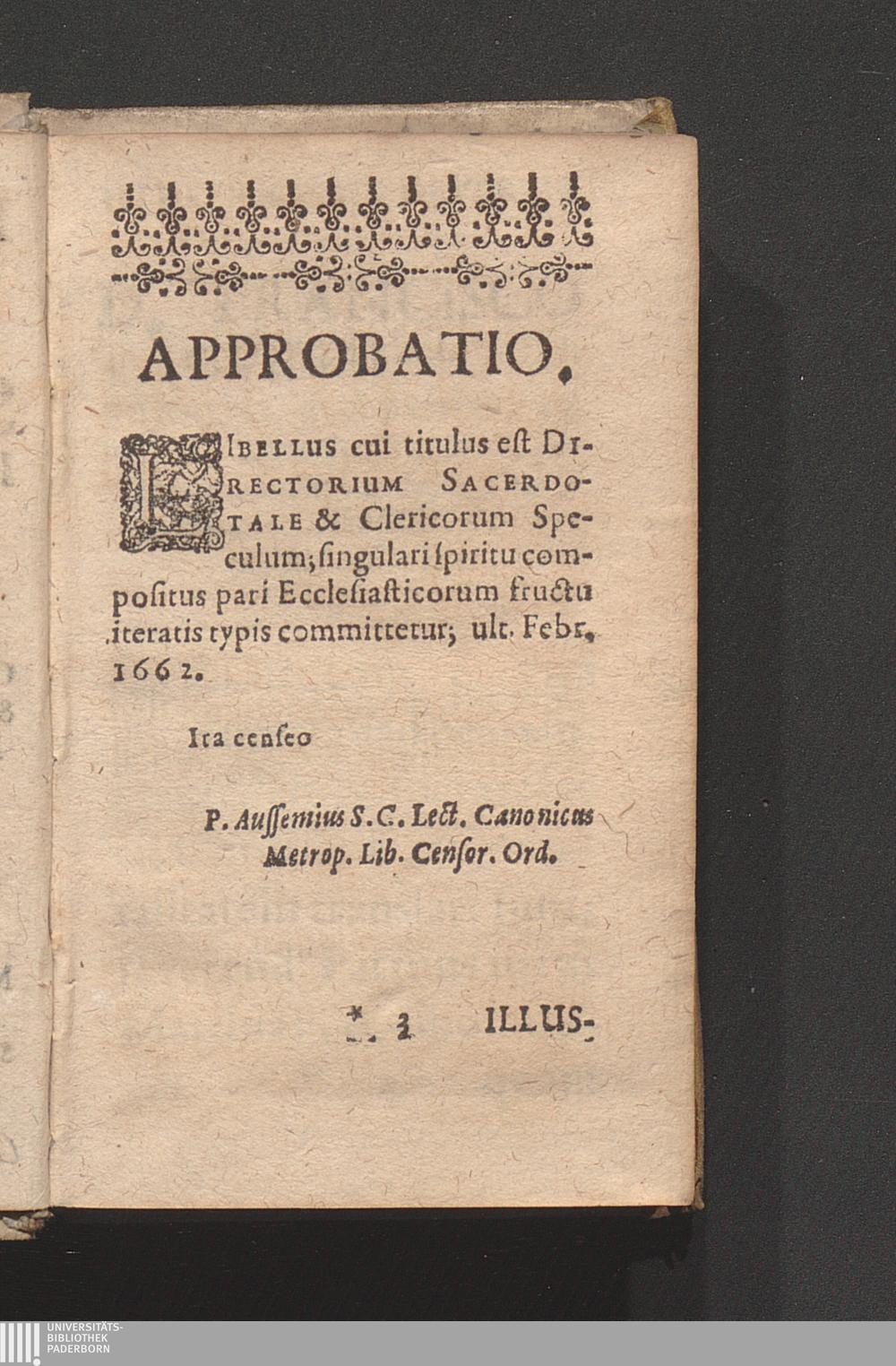 Directorivm Sacerdotale & Clericorum Specvlvm Insigni Pietatis Ac Devotionis Supellectili[...]