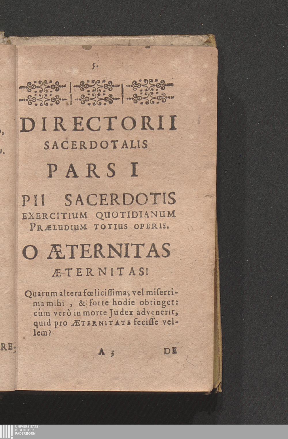 Directorivm Sacerdotale & Clericorum Specvlvm Insigni Pietatis Ac Devotionis Supellectili exuberans : In Quatuor Partes segregatum ... / Cura R. D. Matthiæ Kinchii J. U. Lti. Canonico ad S. Crucem Hildesii